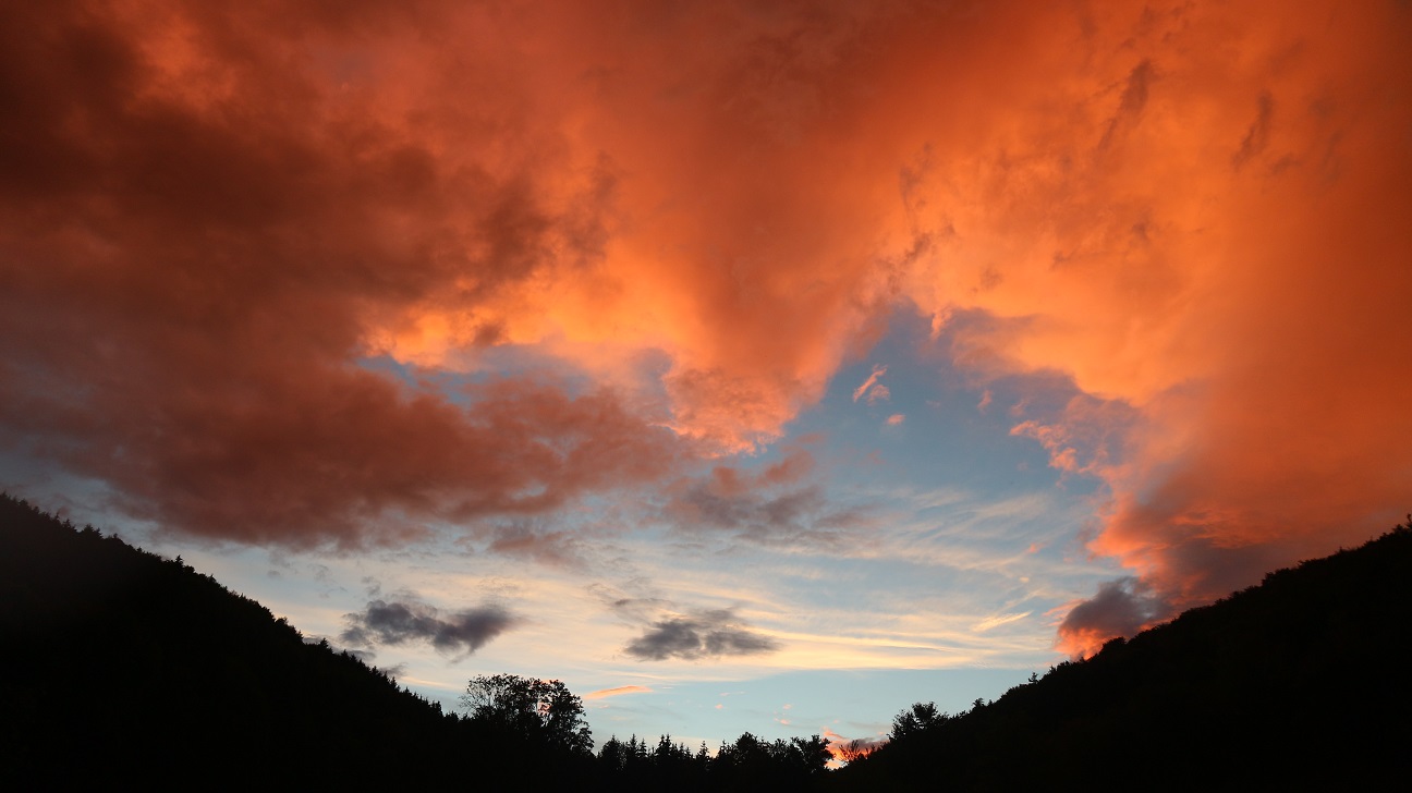 Bei uns spektakulär zum Anschauen, aber nur wenig Regen und etwas Wind...ein paar Handy-Bilder