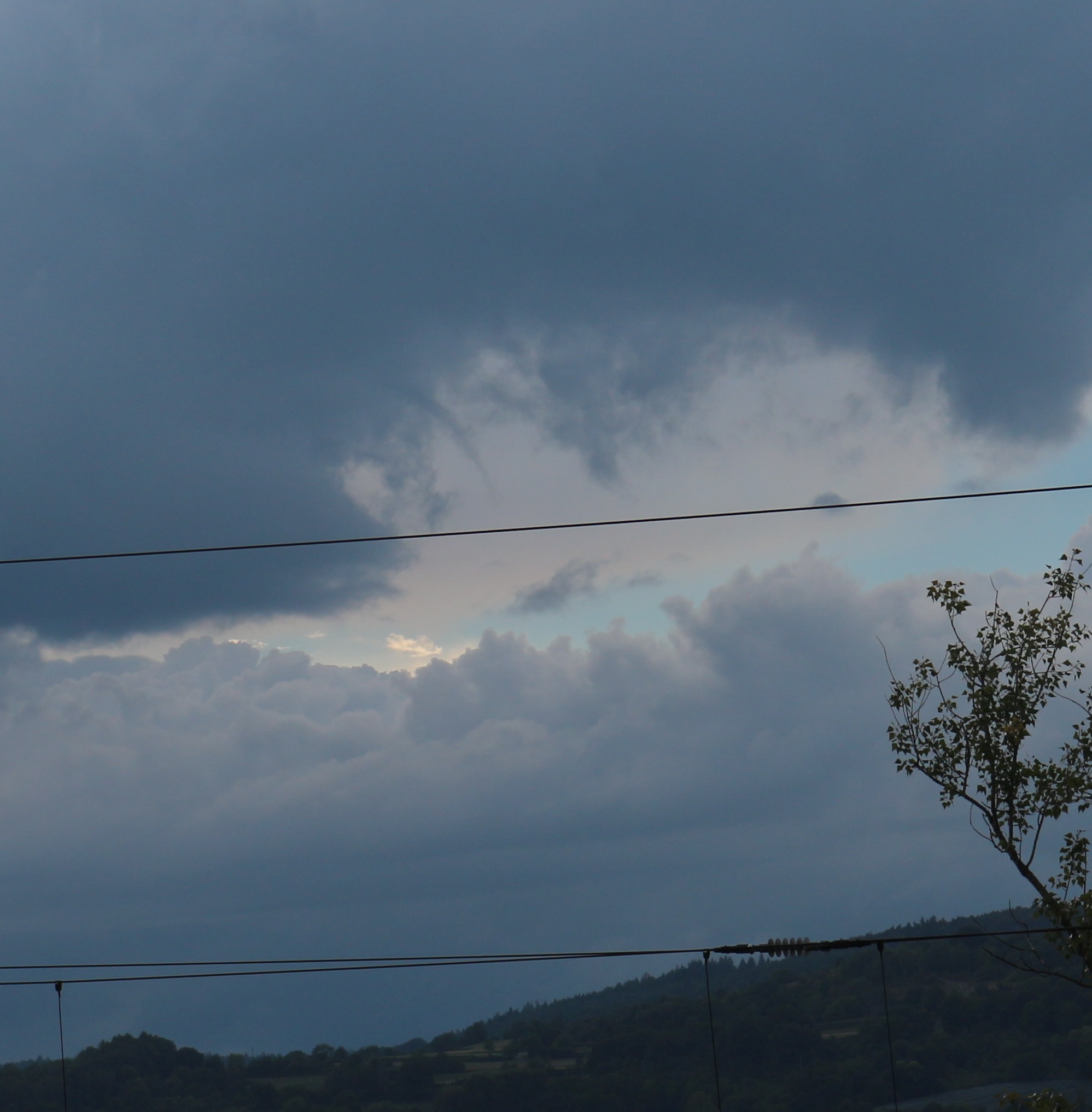 Das Gewitter streifte Sellenbüren mit einem komma-förmigen Schwänzchen,welches an die "Flanking line" erinnert, eine Quelle von Cumuluswolken, welche von Süden her in das Gewitterzentrum hinweinwachsen. Wir sahen nur die Wolkenbasis, diese wirkte, kurz vor der Passage über Sellenbüren, recht chaotisch und bedrohlich. Bei der Passage fielen wenige grosse Regentropfen, der Wind war sozusagen vernachlässigbar, und Donner gab es keinen.
