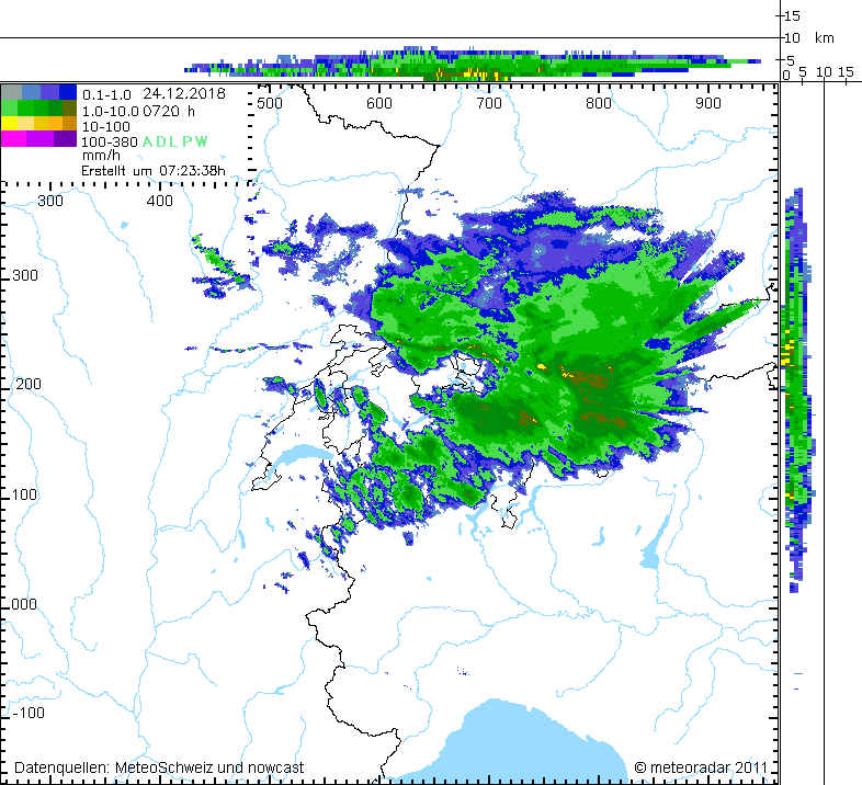Auch hier im ZH Oberland vor rund 20 min Frontdurchgang. Kräftiger Regen mit wenig Eiskörnern, max. RR 97.6 mm/h. Wind dabei war erstaunlich wenig, jedenfalls nicht mehr als die ganze Nacht zuvor. Temperatur 2 Grad runter.