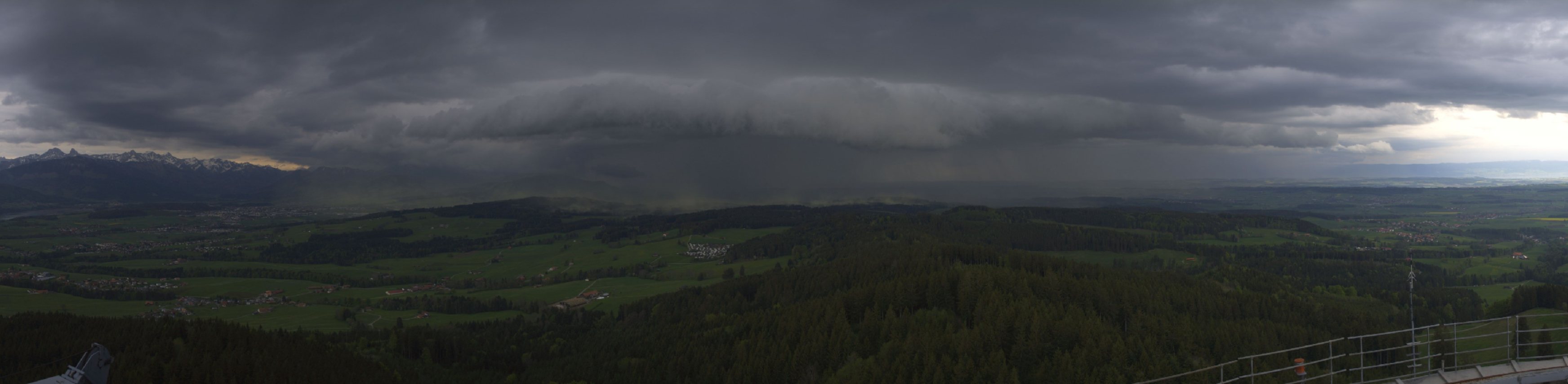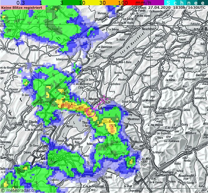 Für die Jahreszeit sehr gut organisierte Gewitterlinie über dem Genferseebecken: