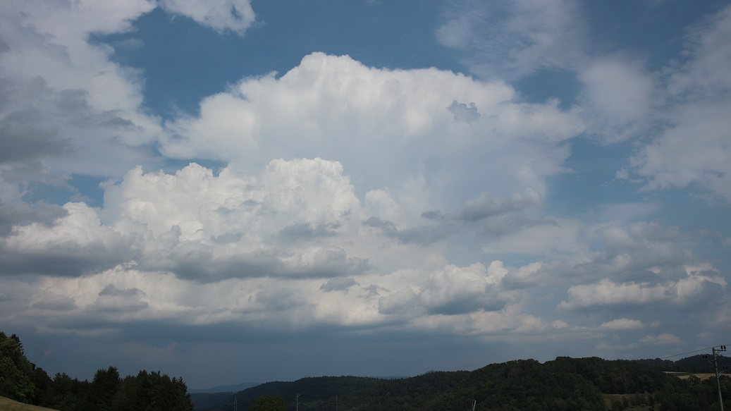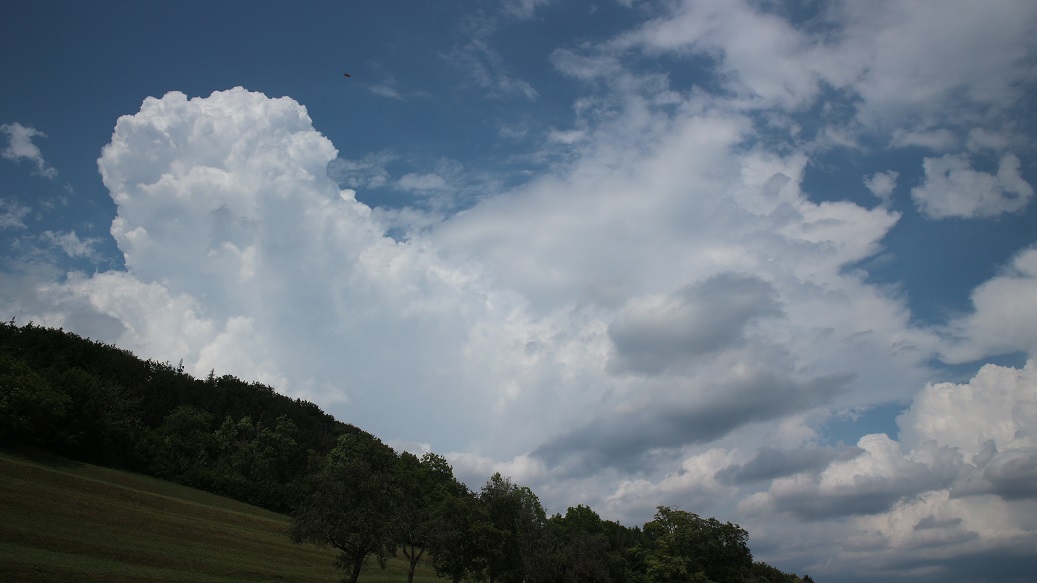Hier im Osten heute auch unterhalb von 4km Quellungen. Gestern war im östlichen Mittelland etwas nicht in Ordnung. Ein warmer Deckel resp. eine Schicht mit trockener Luft oder Auswirkungen vom kräftigen Jura-Amboss. Windkonvergenzen zwischen den beiden Gewitterschienen gab es kaum, ja es gab nicht mal mehr Wind am Abend, es war alles völlig abgekoppelt/elevated. Heute scheint es besser zu kommen. Theta-E's, die trotz Wolkenfeldern bald 60 Grad erreichen. Übrigens auch der südliche Jura traumhaft mit einem Theta-E auf dem la Dole von 66 Grad, Taupunkt 15 Grad! Auf knapp 1700 Metern! Mein Target-Gebiet für heute wäre Schwyz/Glarus, kann aber vorerst nicht weg, also erstmal "nur" Gäbris.