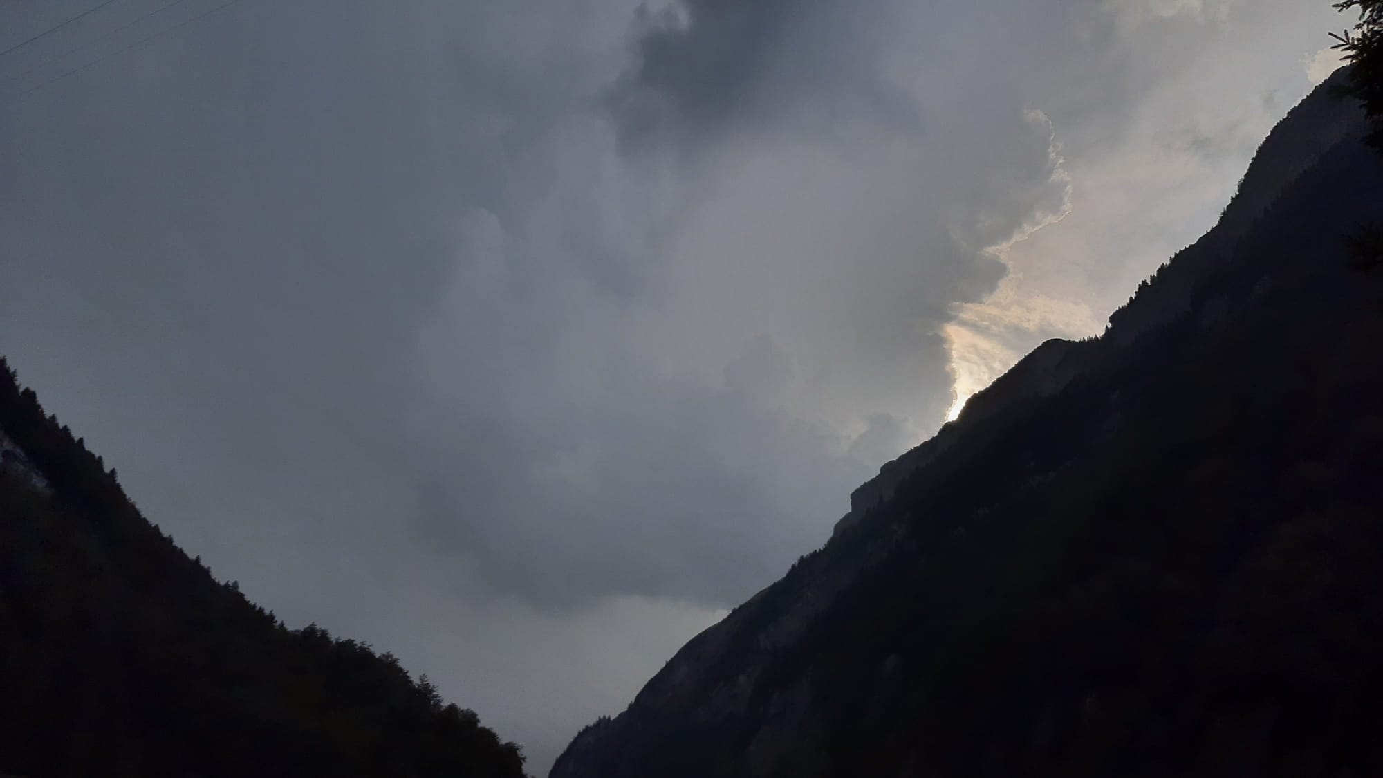 Unser Dorfbach war um 17Uhr fast ausgetrocknet, Wir Sassen Drausen als um 19Uhr auf einmal ein Rauschen durch das Quartier ging. Der Bruggbach hatte auf einmal zuerst klares und dann immer drübers Wasser.