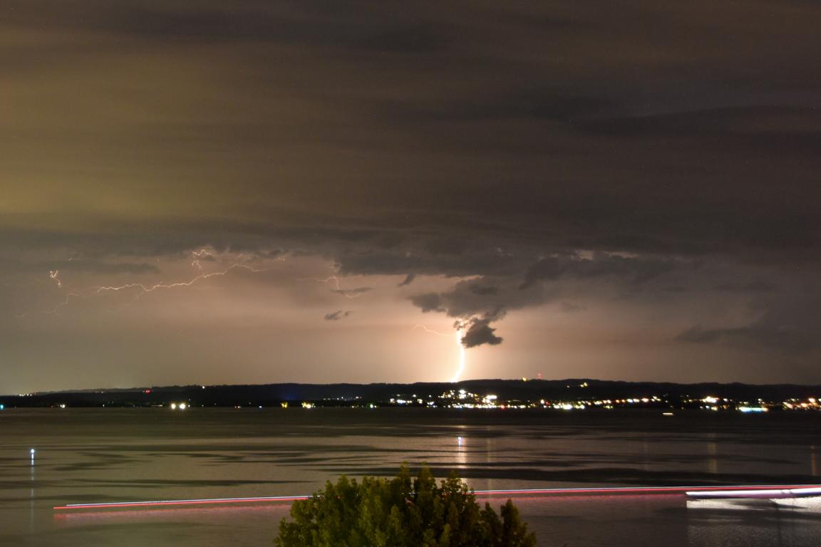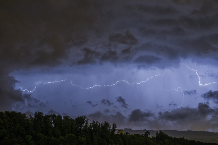Hier in Zürich wieder einmal etwas unorganisiert. Als ich das heranziehende, noch entfernte Gewitter fotografieren wollte, begann es plötzlich kräftig zu regnen, aber ohne Donner. Dann auf den Nachhauseweg plötzlich ein einziger Naheinschlag, etwa 500 Meter entfernt! Sonst gab es keinen einzigen Wolken-Boden-Blitz in Zürich! Fast ein (nicht wirklich gewollter) sechser im Lotto. Sonst nichts Spezielles, leider wieder keine Blitz-Fotos.