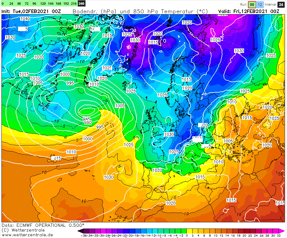...na wenigstens wird mal Skandinavien wochenlang tiefgekühlt. Das war in den letzten Wintern auch nicht soo oft der Fall und das sind zumindest mal keine schlechte Voraussetzungen für einen kräftigen Kälteeinbruch. Ideal wäre als Gegenspieler ein Atlantiktief mit steiler Warmluftadvektion Richtung Norden, welches eine Atlantikblockade stützt und vielleicht sogar ein Downstream Development in Gang setzt. So dass es vielleicht mal Schnee und anschliessend Sonne inkl.  knackiger Kälte gibt statt in der üblichen Reihenfolge Schnee und dann gefühlt 10 Warmfronten. Träumen darf man hier ja