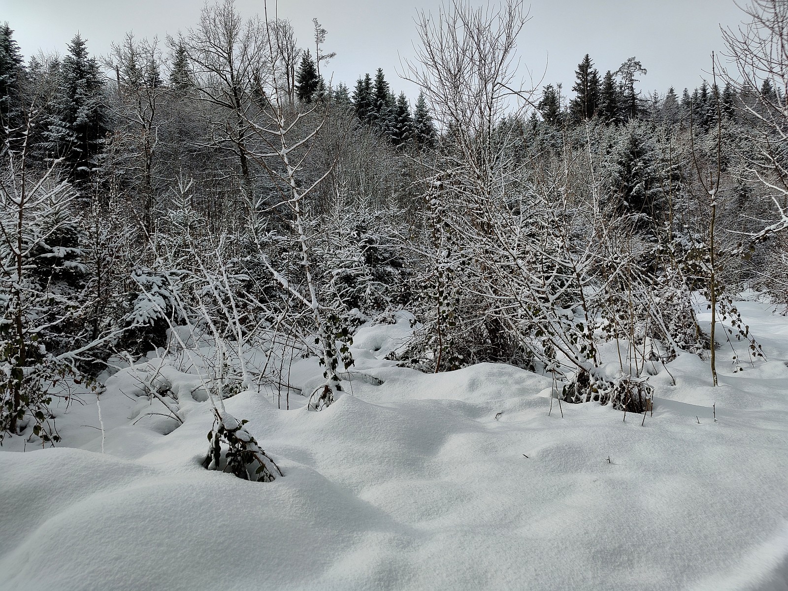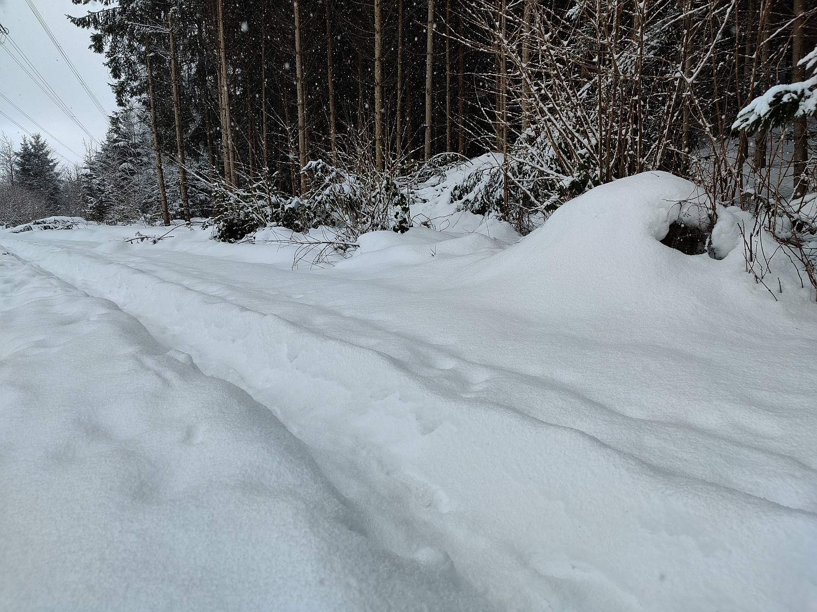 Neuschnee, 10 cm (3 cm auf Samstag, 1 cm auf Sonntag, 7 cm heute):