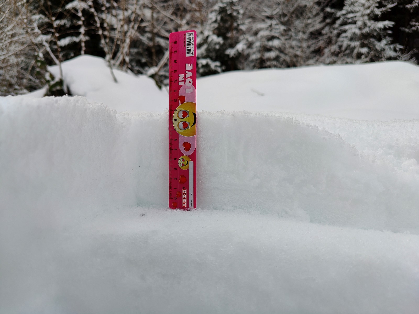 Altschnee, rund 35 cm (leider nur Kinderlineal mitgenommen