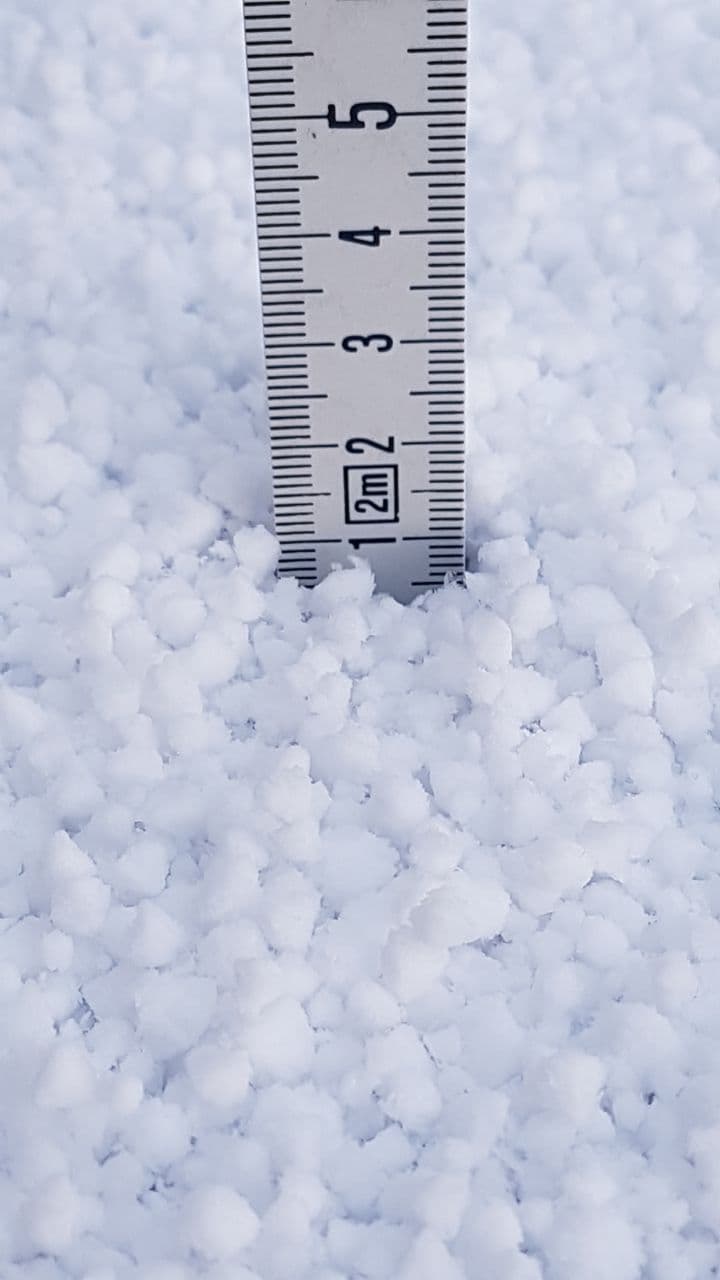 Ich habe hier am Mittag 6 cm Neuschnee gemessen (Autodach im Quartier), d. h. 4 cm neu seit dem Morgen.