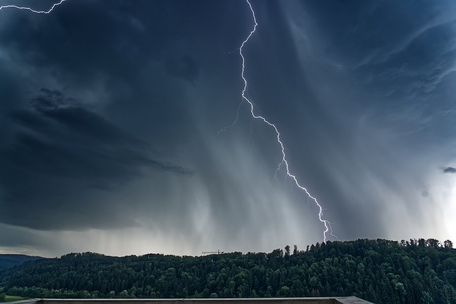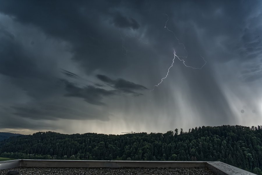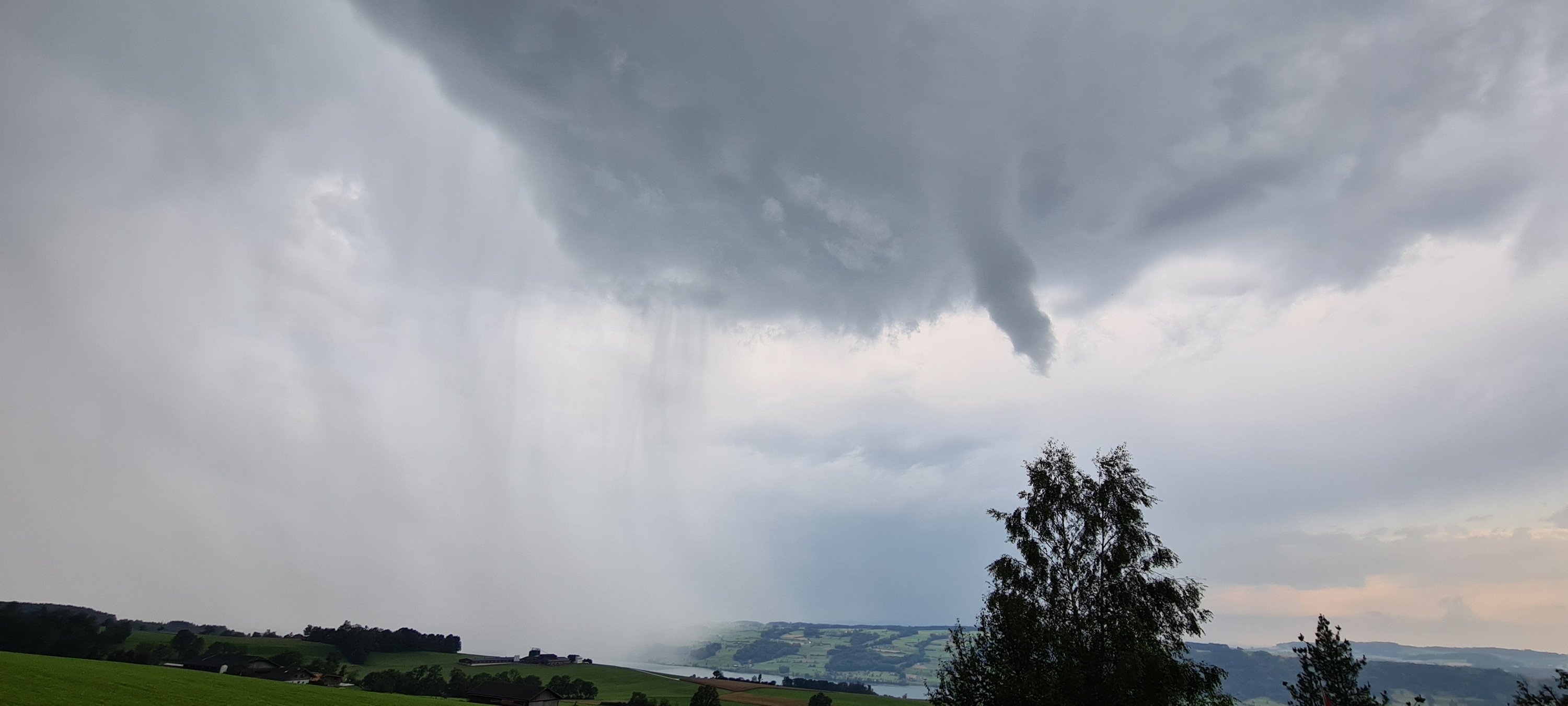 Die Zellen lösen enorm viel Wasser aus der Atmosphäre. Sintflut hier in Männedorf. Dabei kaum Blitz und Donner, einfach eine Wand aus Wasser!