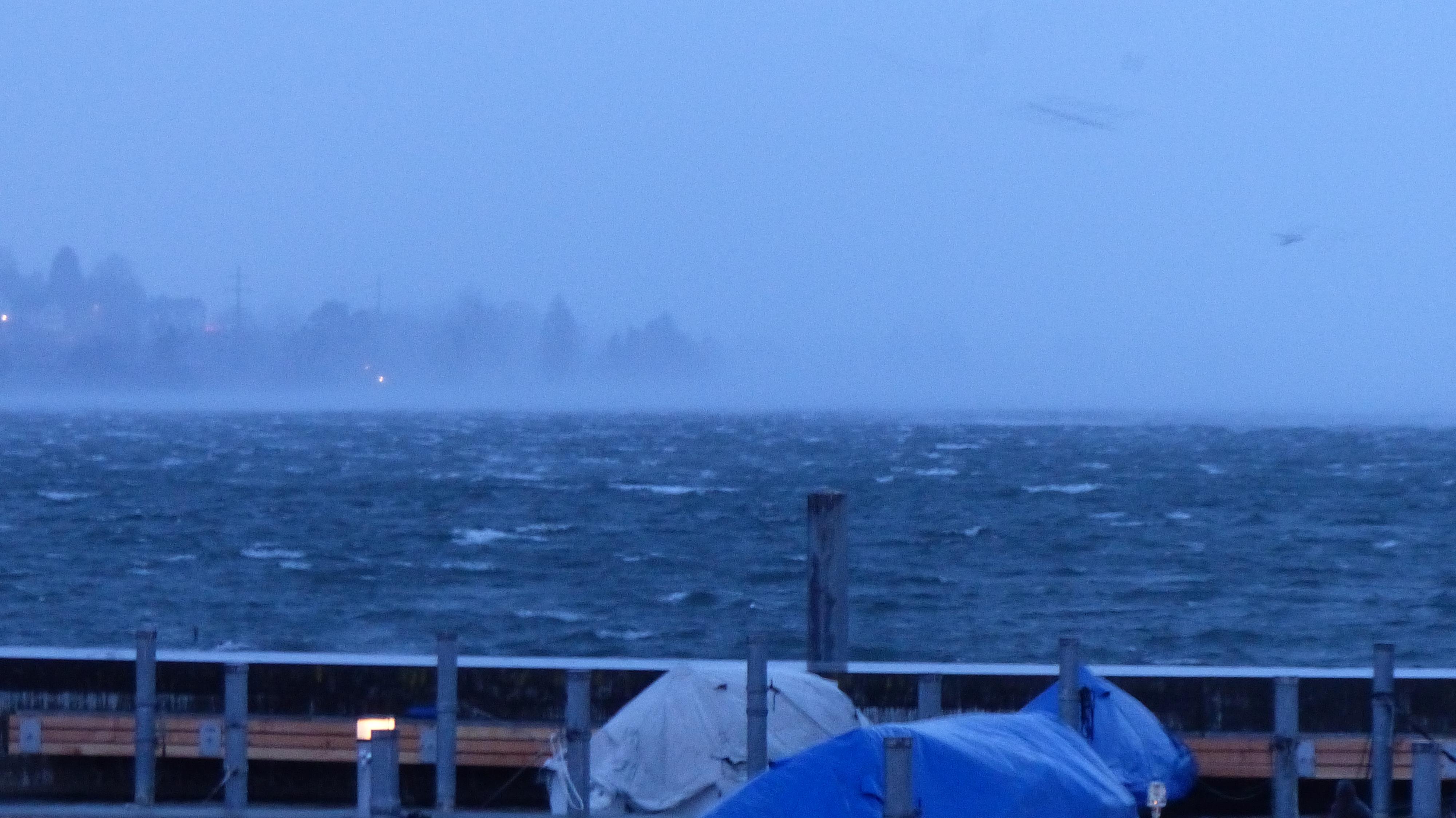 Für die Videoaufnahmen und Bilder während des Sturm habe ich mich im Eingangsbereich eines Hotels am Hafen untergestellt. Das hatte den Vorteil, dass ich die Geräuschkulisse der Umgebung auf dem Video habe. Der Wind am Mikrofon hält sich in Grenzen.