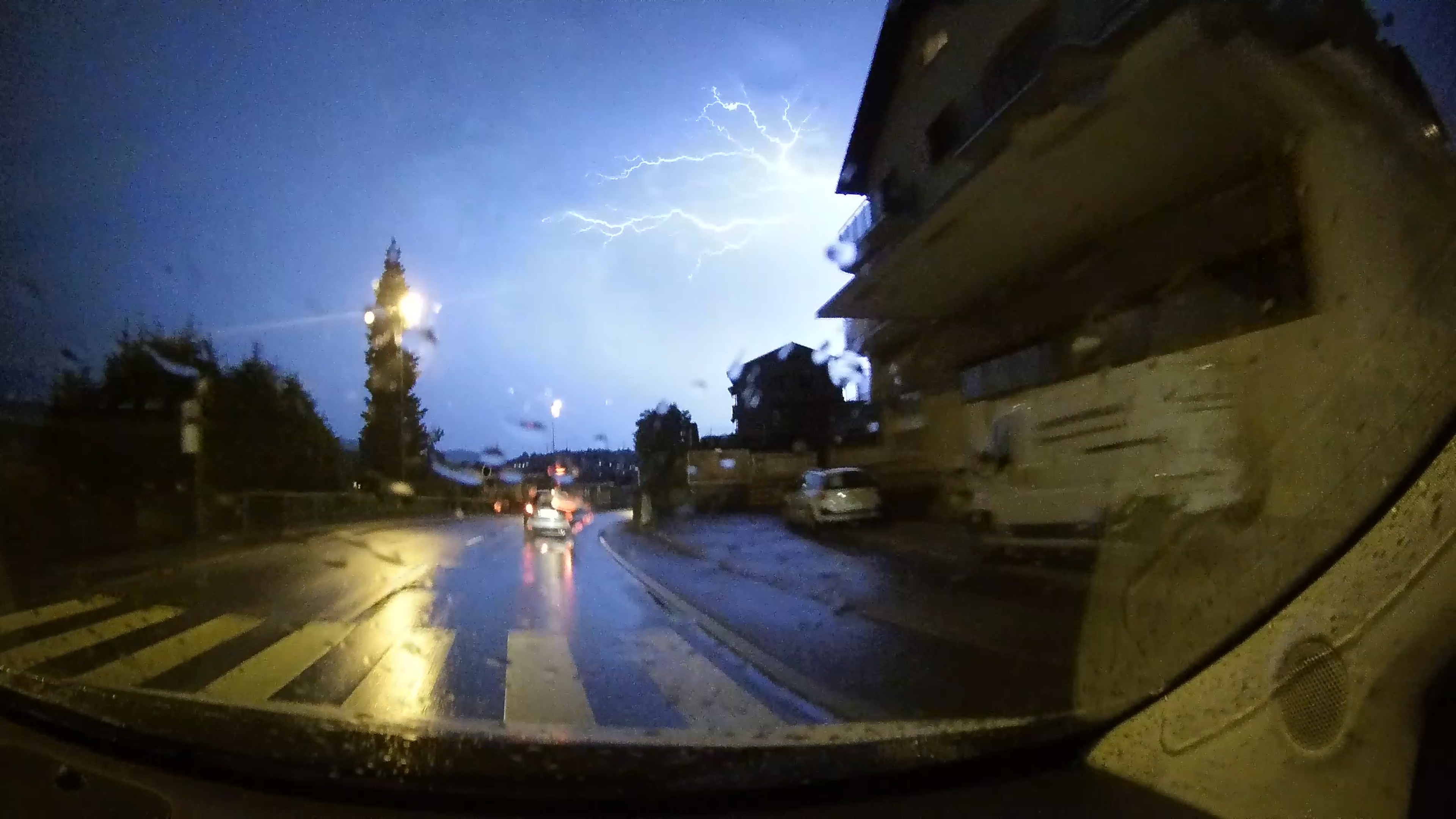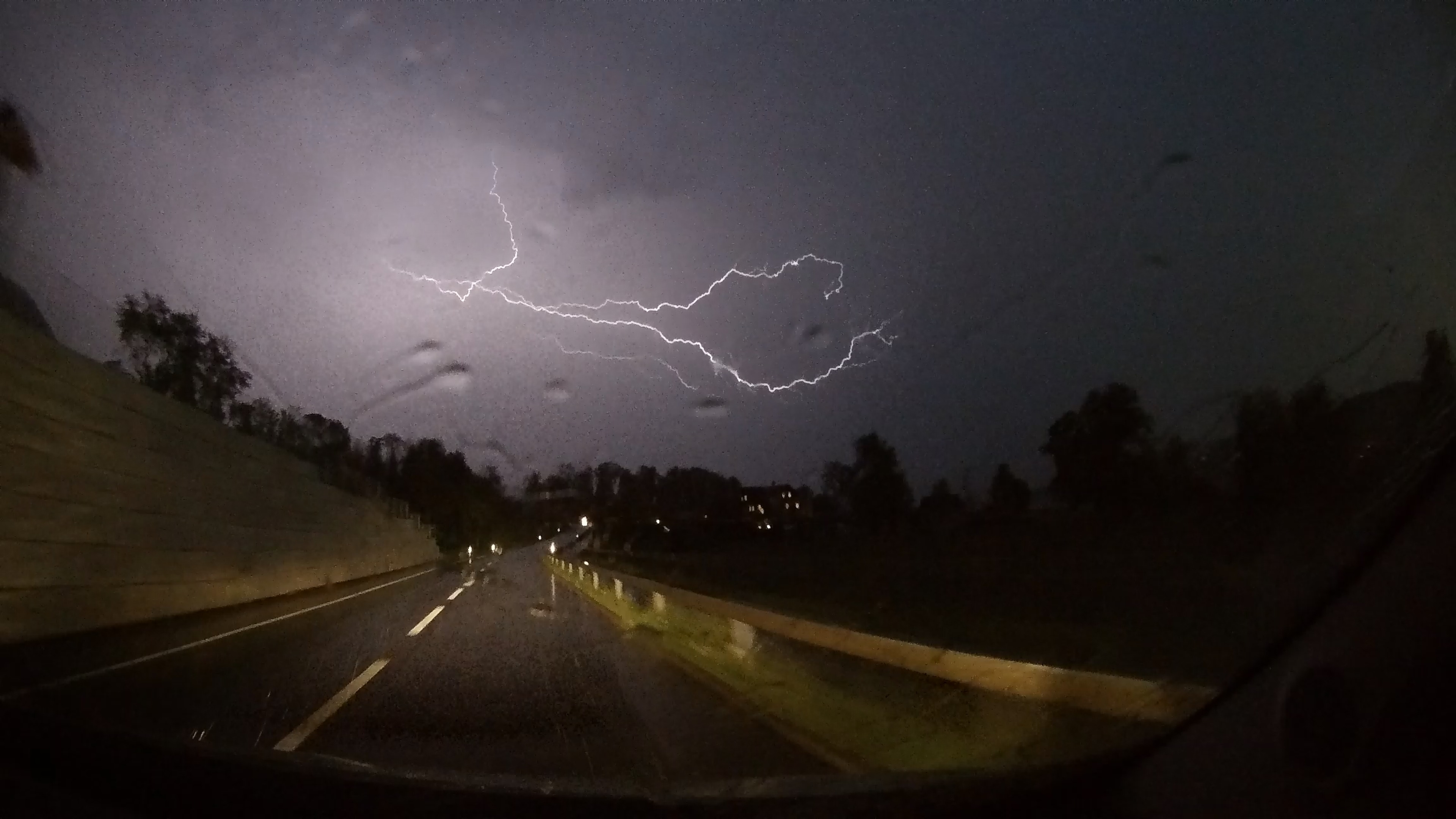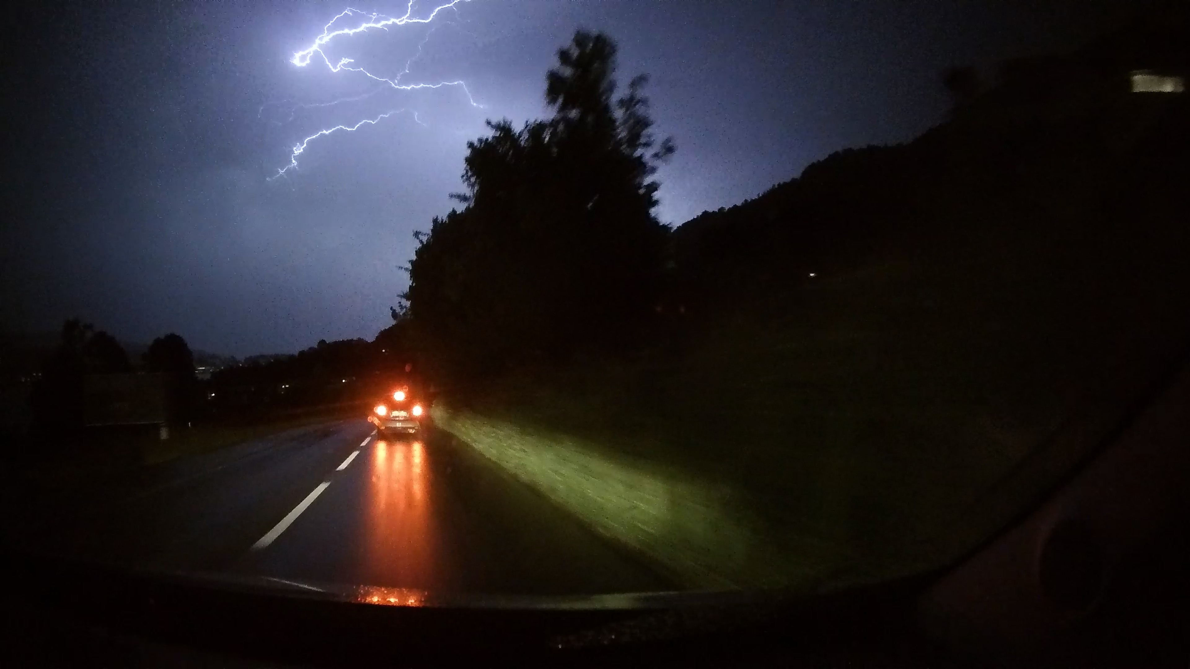 Es hat schon ständig geflackert und viele Blitze waren im NS eingebettet. Die fotogenen kamen dann auf der Rückseite der Zelle(n) - es waren im Grunde zwei. Aber die aus Westen einsickernde, bodennahe Kaltluft war der Dolchstoss und die Gewitterlinie klappte innerhalb kurzer Zeit zusammen, nachdem sie über Bauma hinweg noch bis zum Sternenberg durchhielt.