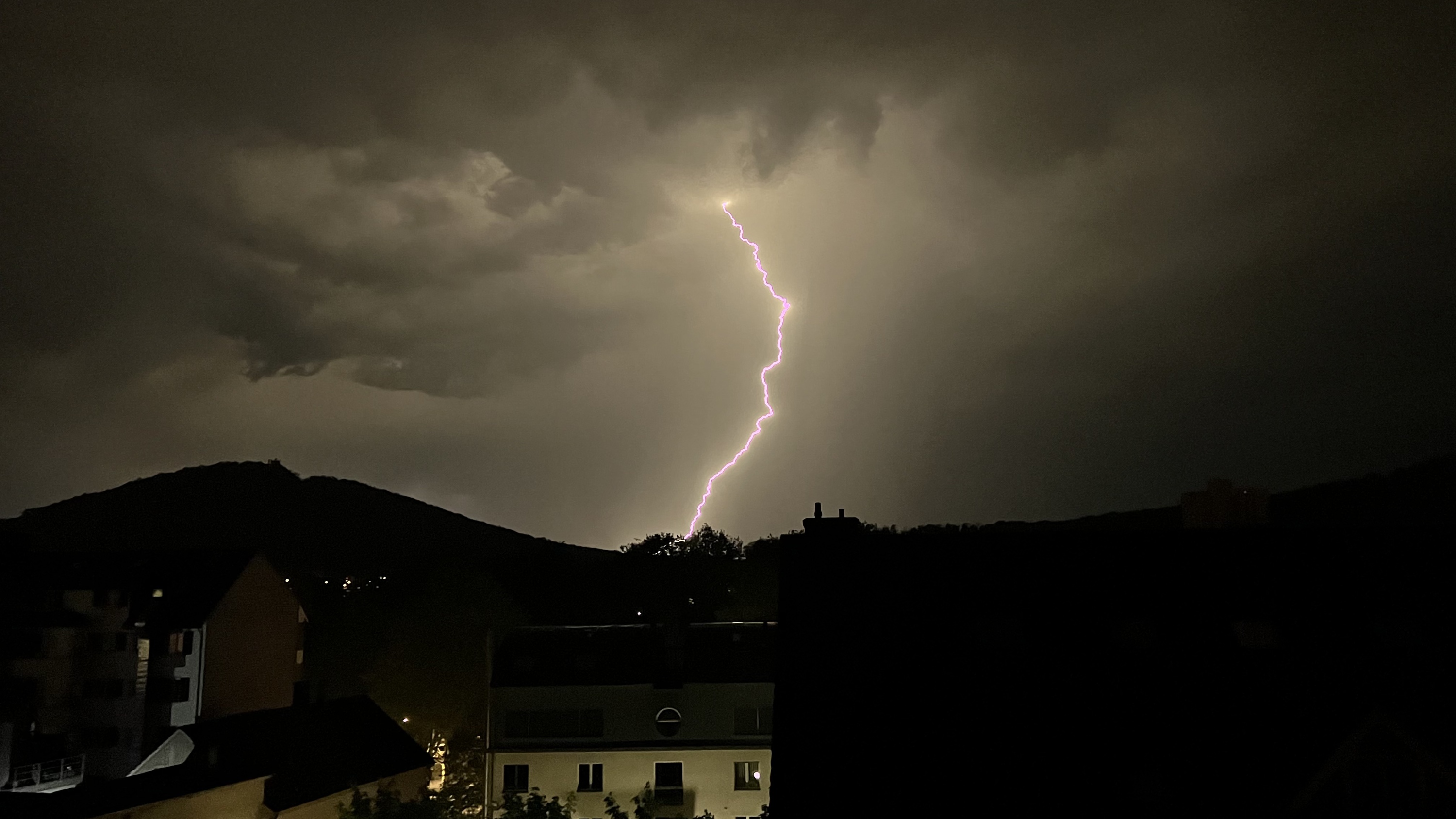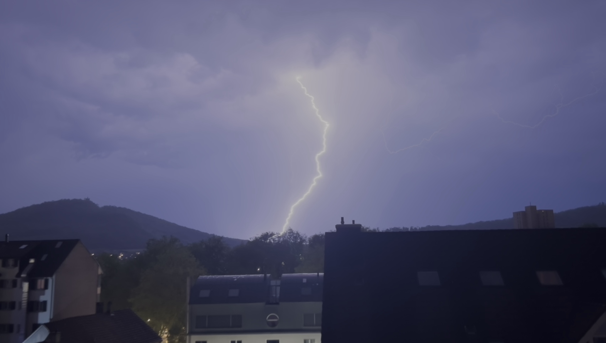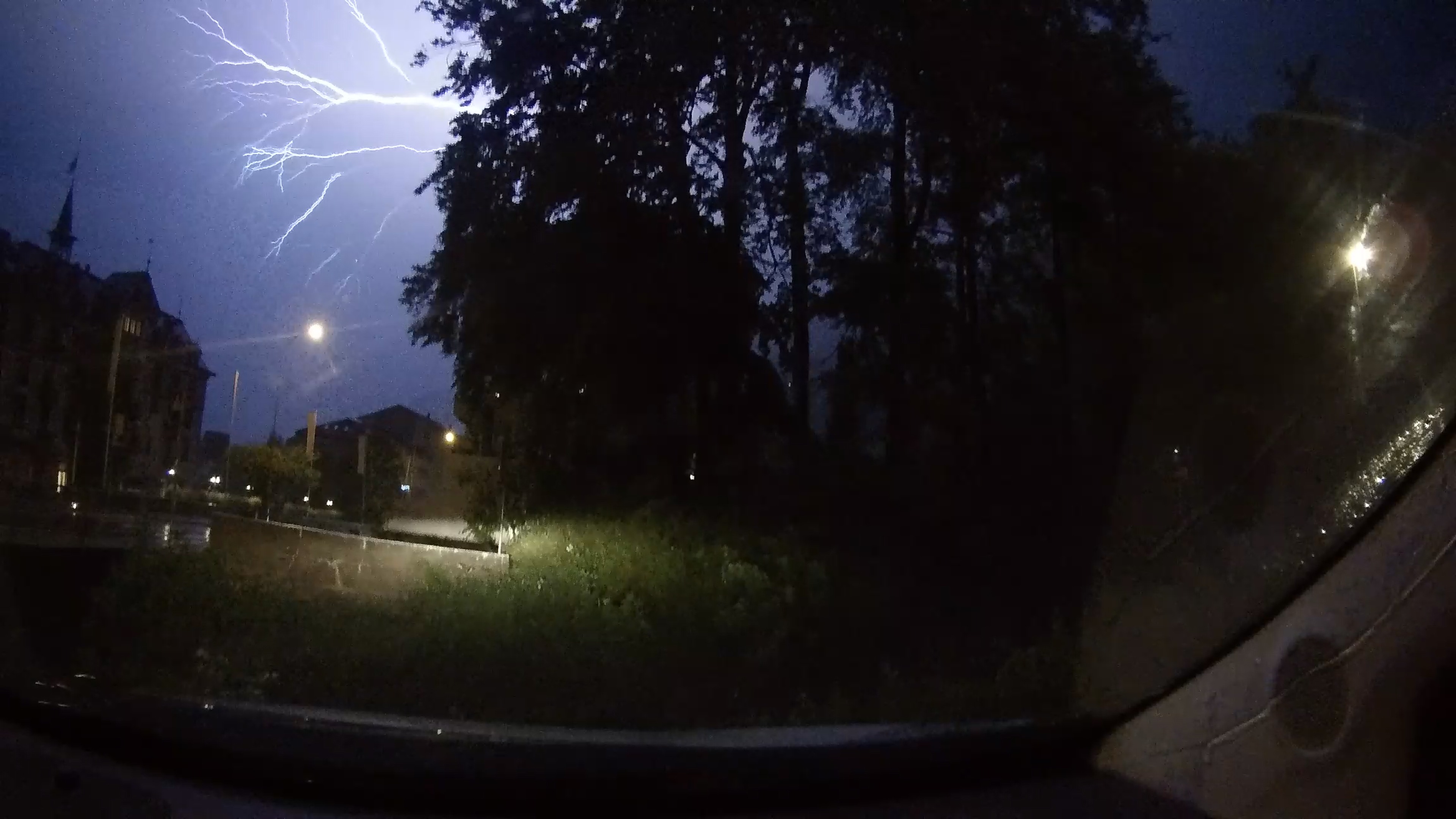 Ich fotografierte gemütlich auf dem Balkon. Gemäss Blitzortung soll rd. 100 Meter vor meinem Balkon ein CG eingeschlagen haben. Das habe ich nicht mitbekommen; vielleicht ein "Jöhh"-Blitzli. Und dann habe ich extra noch weiter fotografiert, weil ich überzeugt war, dass der kräftige Schluss-CG kommen würde... Und der Verschluss ging natürlich ca. 1/100 Sek. vor dem Blitz zu....grrrr.