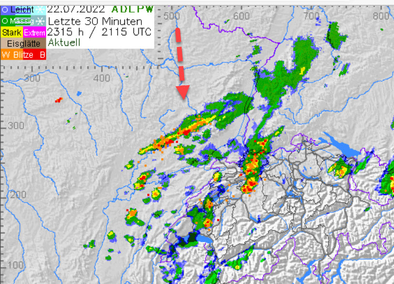 Und hier in Bauma donnerts gerade.... ich sage aus dem Bauch heraus, die Zelle schaffts nach ZH und in die Ostschweiz (die welche vom Jura her in Richtung Nordost unterwegs ist...