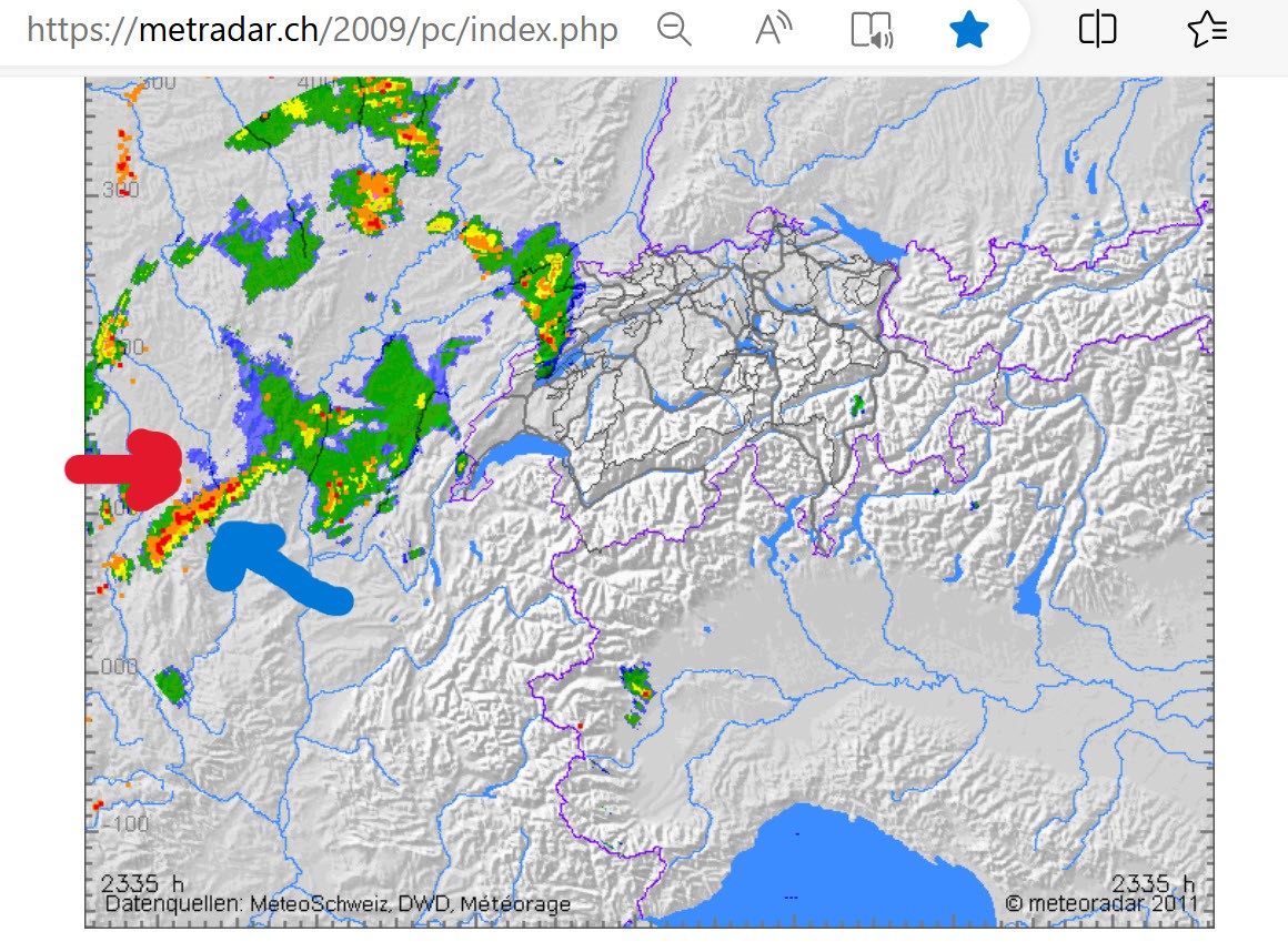 Unterschätzt die Zellen nicht, die jetzt aus den östlichen Voralpen heraus Richtung Nordosten ziehen. Wir wurden hier in Männedorf gerade von einem dieser Exemplare geduscht. Das sind Wasserbomben. Sehr hohe Niederschlagsintensität bei langsamer Verlagerung!