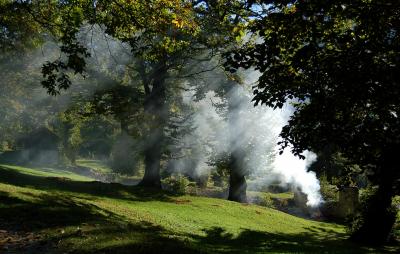 Im Prinzip ja. Du entfernst Wärme(Energie) aus dem System "Kastanienschalen", also wird das System um diese Energiemenge ärmer, also über E=m c^2 entsprechend leichter. Nur geschieht das bisher halt über sehr ineffiziente chemische Umwandlungen (Feuer, Katalyse).