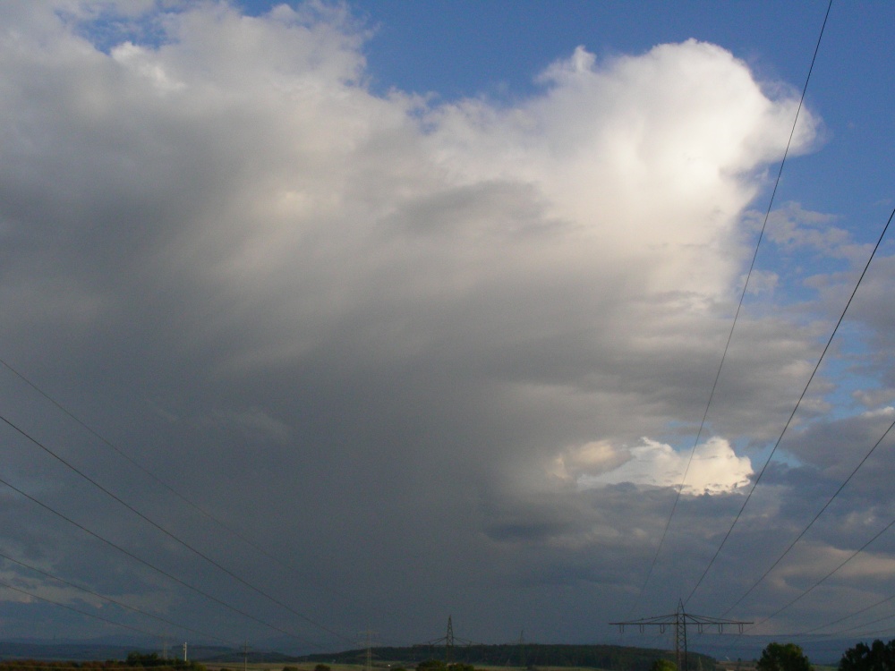 Jetzt fuhr ich doch noch etwas in Richtung Süden auf eine Anhöhe, da ich von dort besseren Blick in Richtung Schwarzwald hatte. Leider waren kaum noch Strukturen von der Zelle zu erkennen, laut Radar schwächte sie sich auch ziemlich ab.