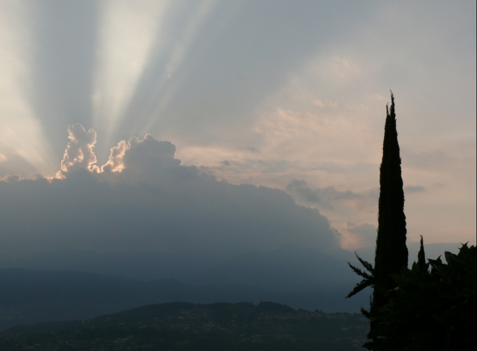 Wurde soeben (19:30 Uhr) in Lugano von einem kurzen aber heftigen Gewitter überrollt. Interessant war, dass es im 1/3 und 2/3 nur heftig blitzte und erst im 3/3 stark regnete. Hagel war nicht dabei. Jetzt scheint bereits wieder die Sonne durch den Dunst.