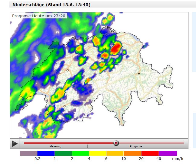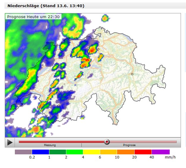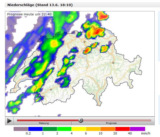 Z.B. schaue ich nicht nur die Karten an, beobachte im Nowcast Sat- und Radarbilder, sondern lasse auch die Erfahrungen mit einfliessen und stöbere in Archiven. Als Beispiel heute Abend: