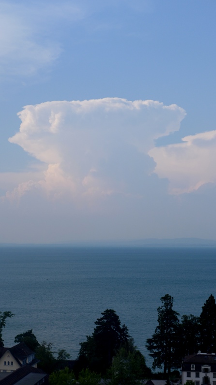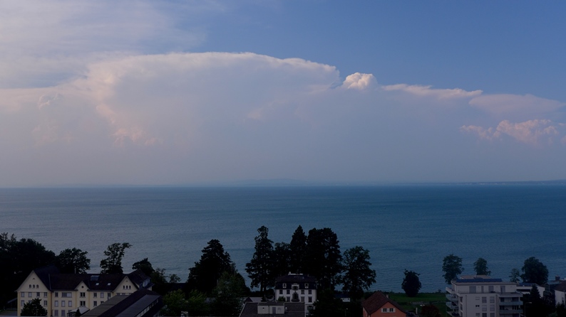 Über Friedrichshafen entsteht gerade ein "Atompilz"-Cb wie er im Lehrbuch steht (Standort Rorschacherberg)...