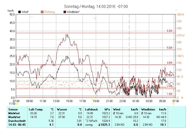 In Seegräben (Zürcher Oberland) zwischen 16 und 16 Uhr eine recht starke Bise mit Böenspitzen über 60 Km/h. Ich kann mich nicht an so hohe Werte bei Bise erinnern.