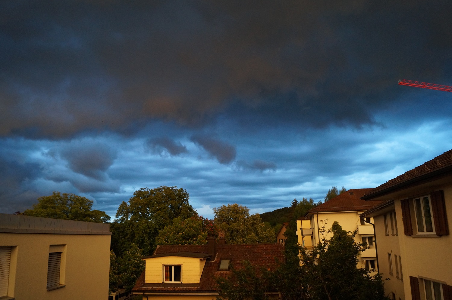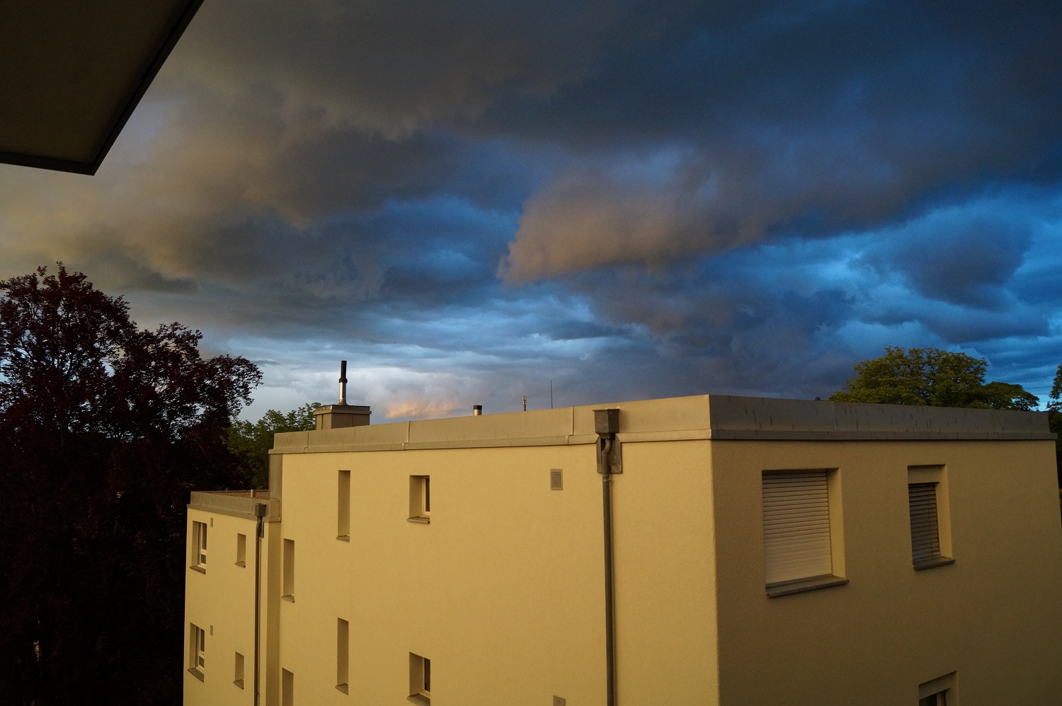 Tja und ich wohne inmitten von urbanem Beton. Null Chance auf Wetterbeobachtung unterhalb von den umliegenden Flachdächern....