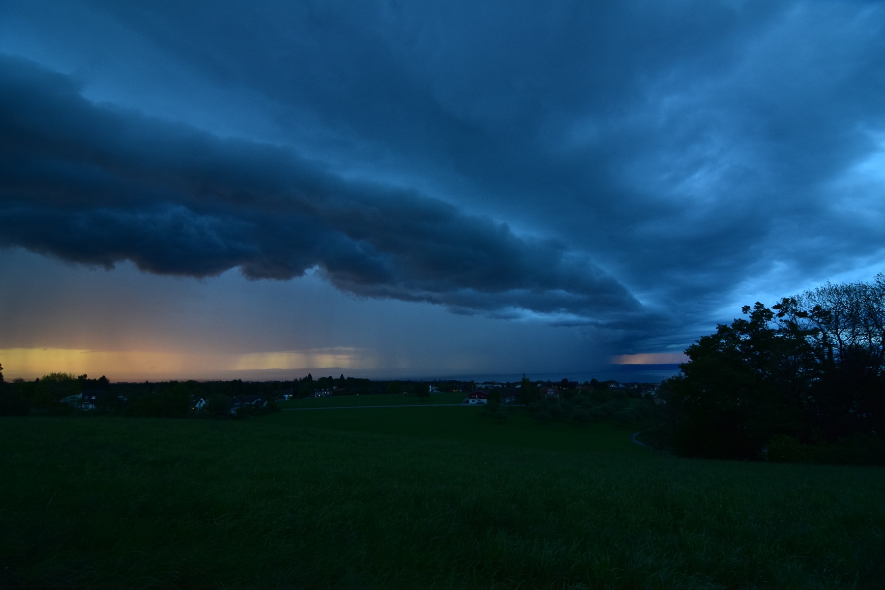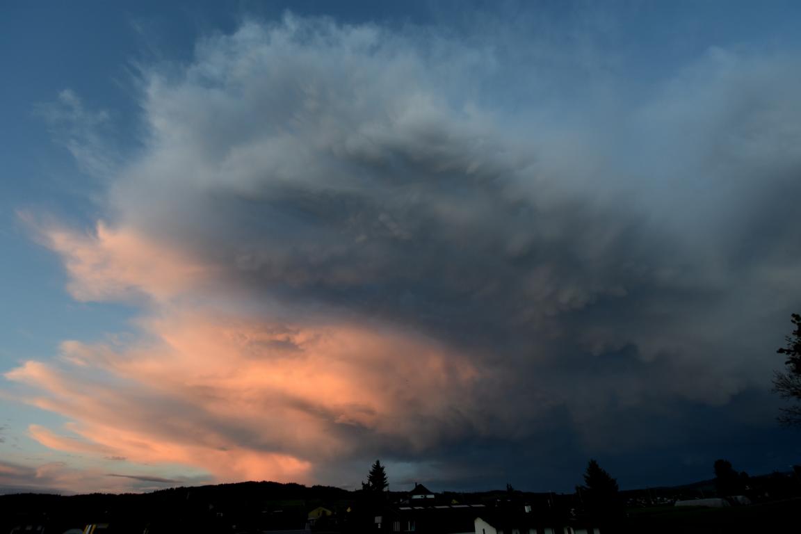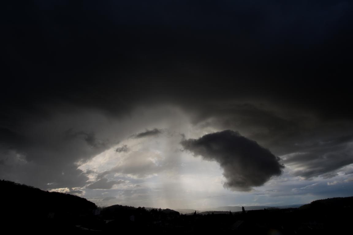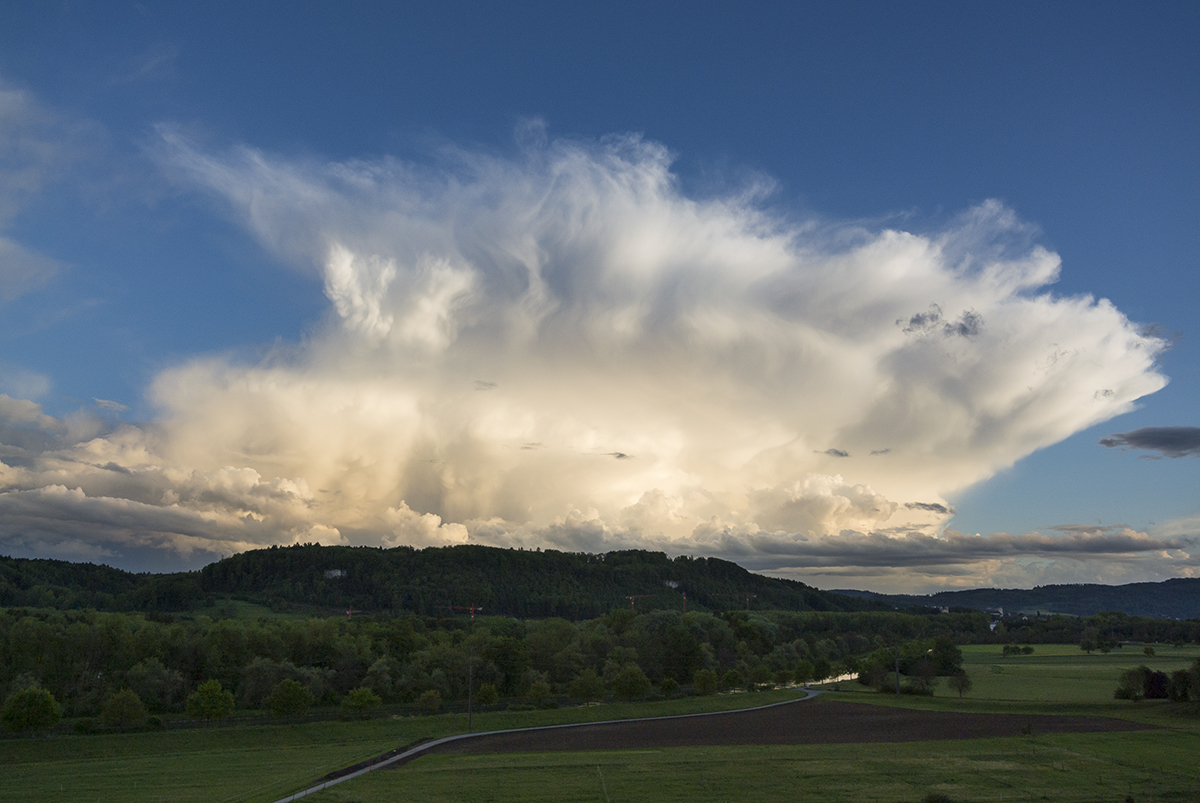 Am Schluss war da ja noch Gewitter-Zelle Nr. 8 (erstes Bild unten), die von Embrach her am Abend in Richtung Winterthur zog (mit Blitzen also..). Beobachtungsstandort Siblingen in Richtung Südosten...