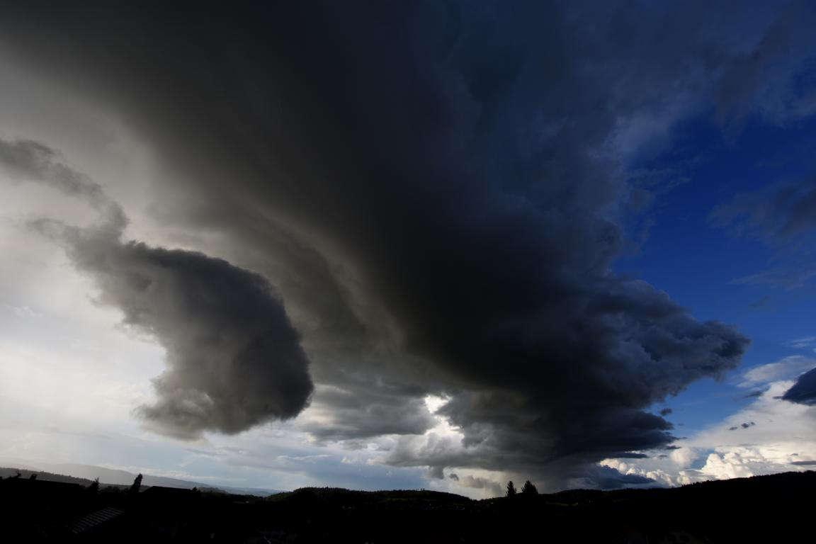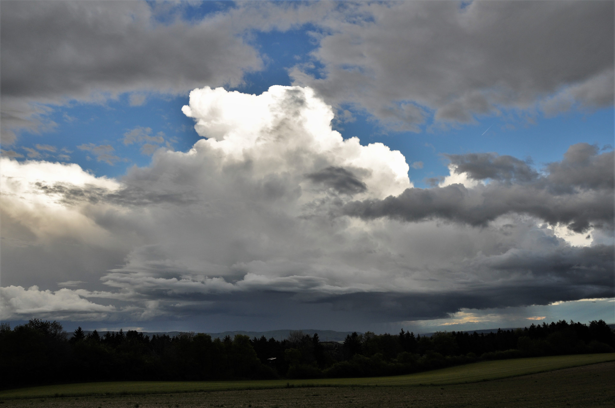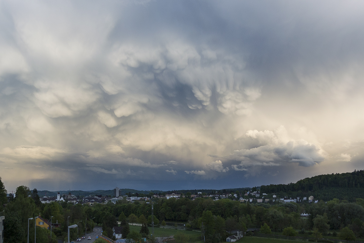 Am Schluss war da ja noch Gewitter-Zelle Nr. 8 (erstes Bild unten), die von Embrach her am Abend in Richtung Winterthur zog (mit Blitzen also..). Beobachtungsstandort Siblingen in Richtung Südosten...