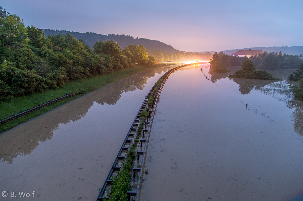 Unterwegs sowie zwischen Mühlau und Sins hatten wir viele Überflutungen gesehen und waren sehr nah am Geschehen.