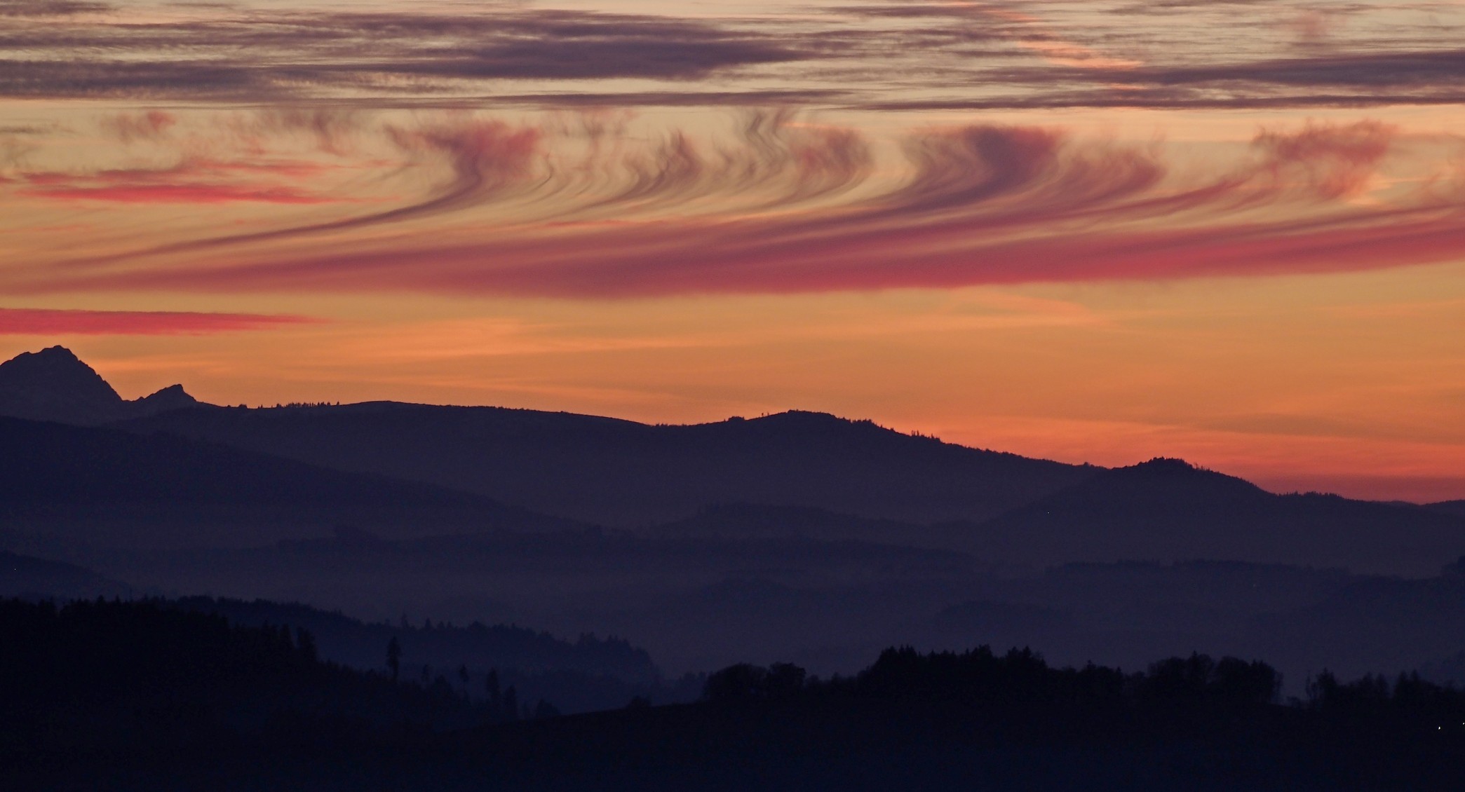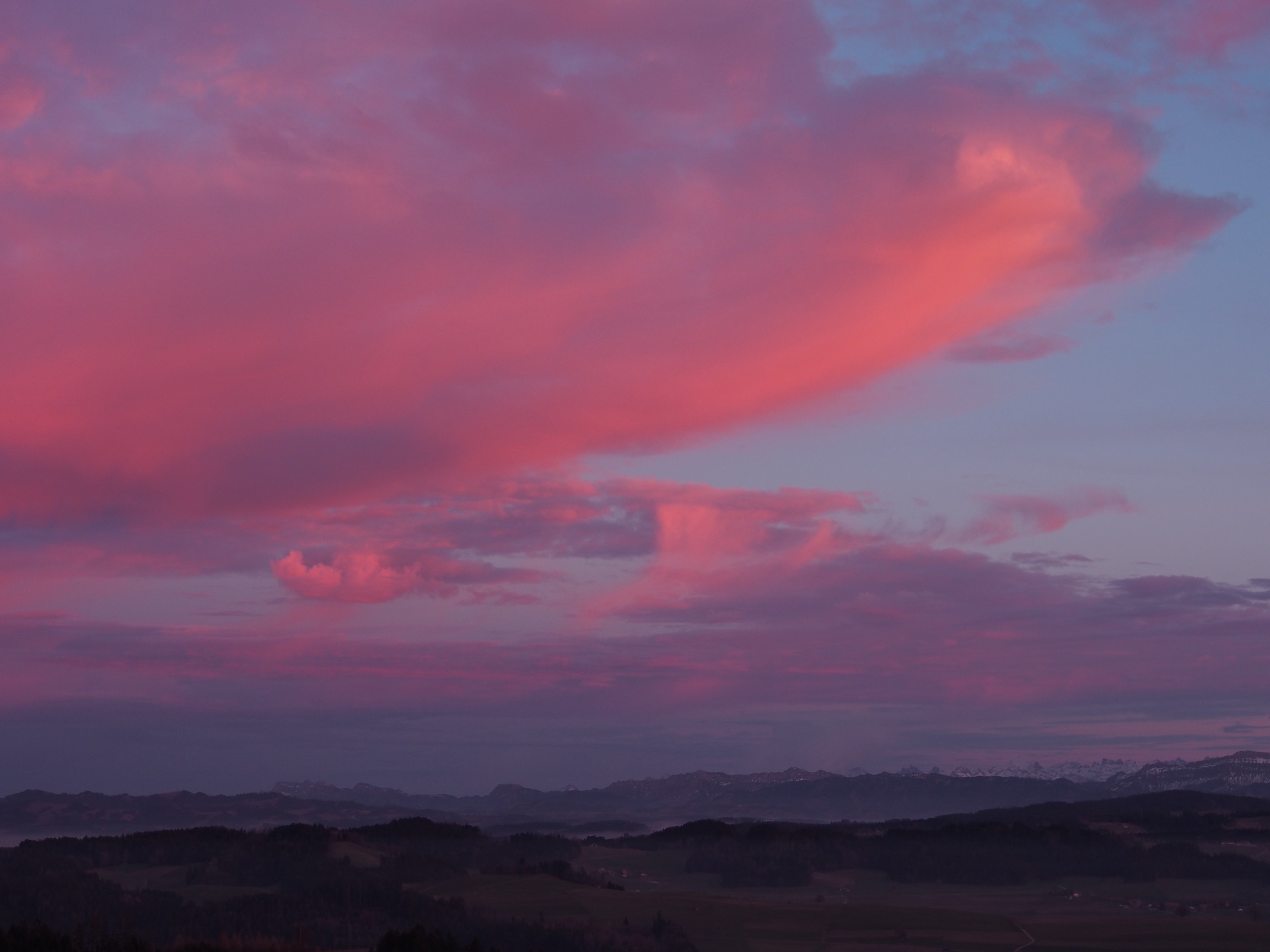 Meine Handyaufnahme mit Hügel im Vordergrund kommt natürlichnicht an Deine Aufnahme 'ran. Ich poste sie trotzdem.
