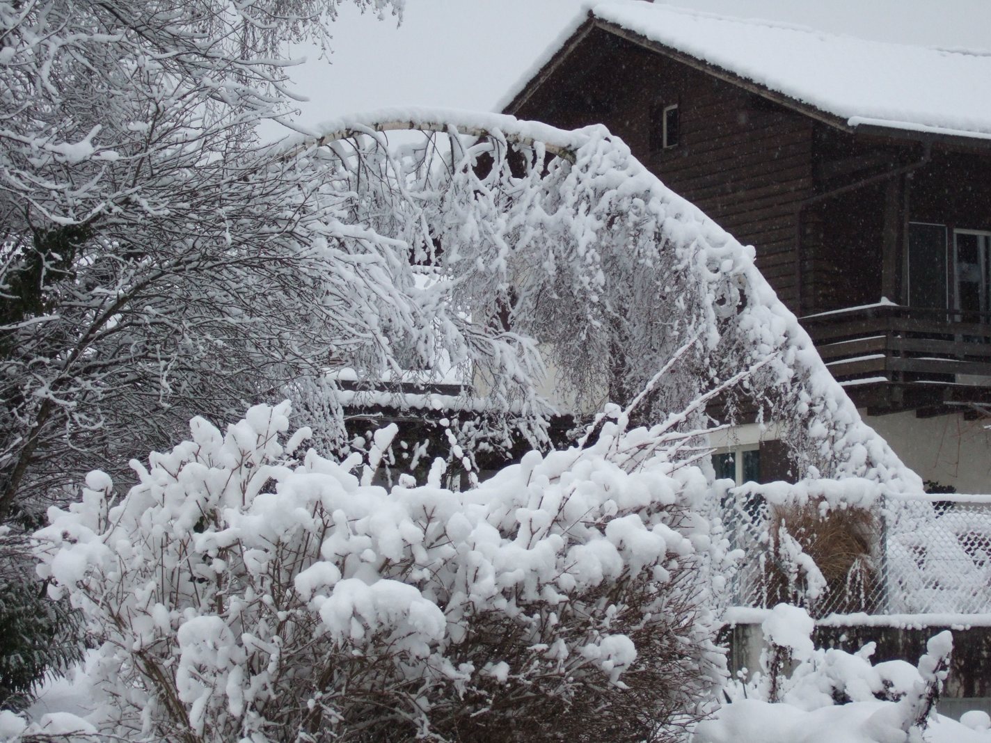 Der Schnee ist sehr schwer und klebt richtiggehend an den Bäumen, richtig tolles Winterwetter da draussen. Ich hätte jedenfalls nie erwartet, dass es bis auf 300m runter so viel Schnee geben würde gestern und heute... :-)