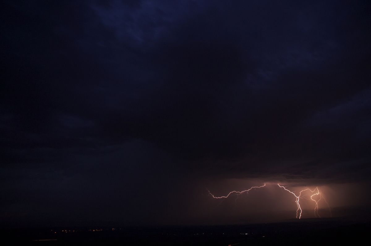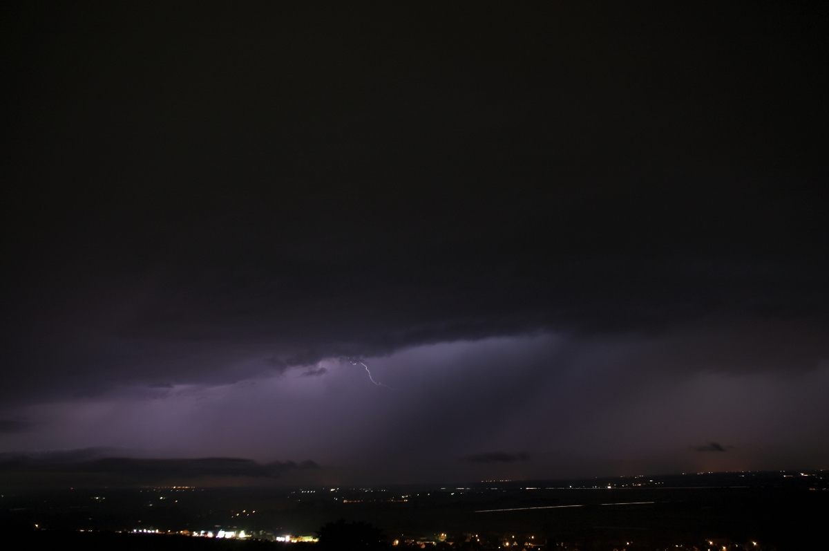 Ich fuhr über Reinfelden nach Lörach West und wolte eine der Kräftigen Zellen erwischen, dies galang mir aber nicht da diese bereits im Schwarzwald waren, deshalb gings zurück nach Reinfelden wo ich einen kurzen halt machte um das Radar zu checken, im Blitzlicht konte ich eine sehr tiefe Wolkenbasis ziemlich genau über mir erkennen und es setzte auch kurzer Grostropfiger Regen mit wenig kleinem Hagel ein, es war die Superzelle die knapp Nördlich des Rheins nach Osten Zog.
