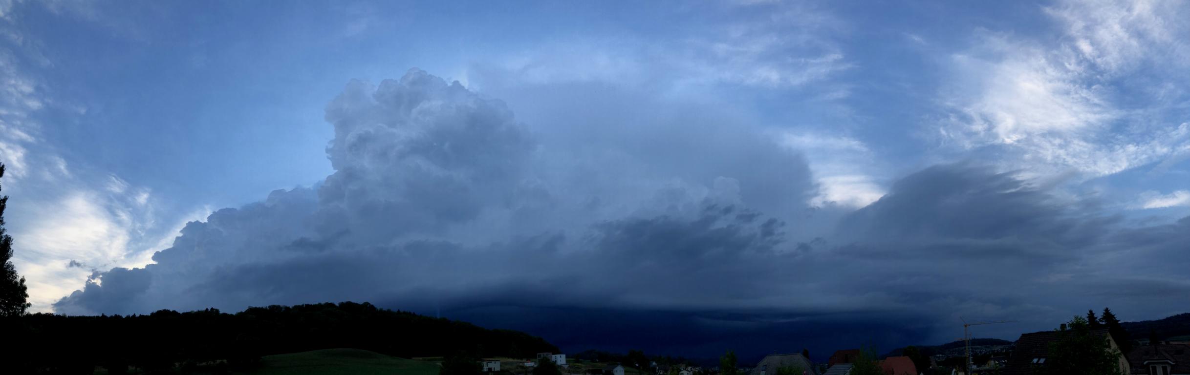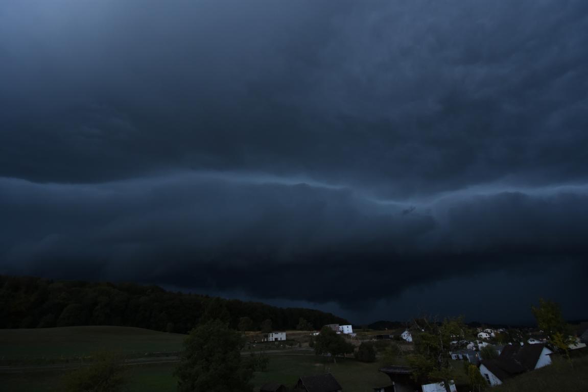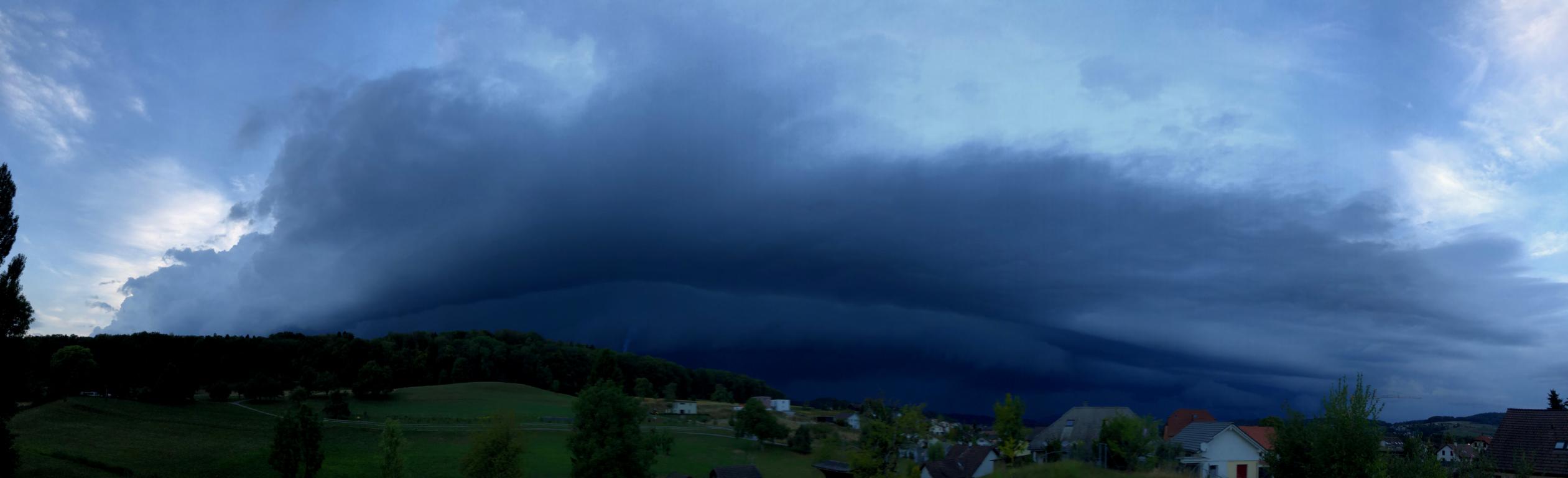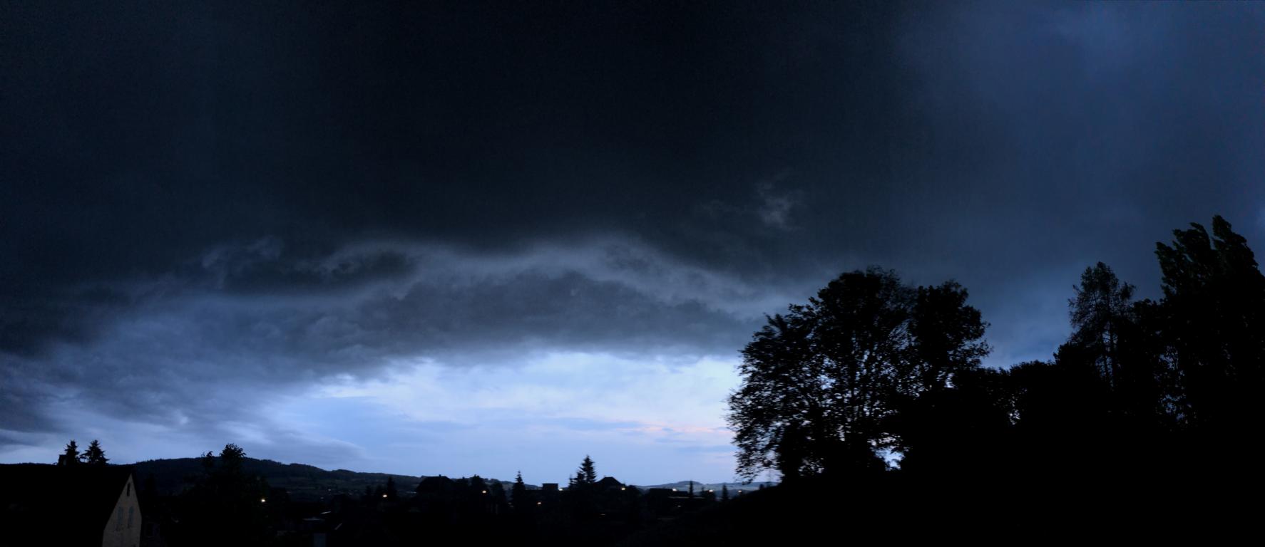 Das war jetzt eine sehr imposante Böenfront, die unsere Gegend überrollte. Ich fotografierte solange, bis schlagartig Platzregen und nahe Blitze da waren. Dann musste ich - wie der Innerschweizer so schön sagt - schleunigst die Finken klopfen!