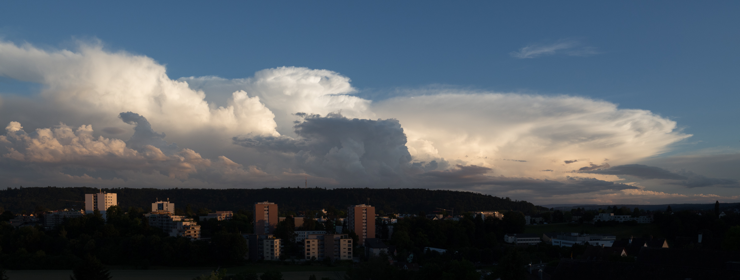 Erste kleine Gewitterzelle über Zürich. Das Timing ab neun Uhr abends passte gut. Etwas Platzregen und ein paar wenige Blitze. Dürfte eine unruhige Nacht werden