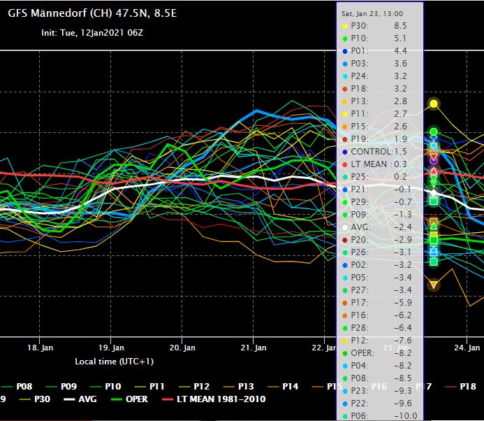 Alles ab dem 19./20. Januar herum erscheint mit völlig unsicher. Der Spread wird dahinter wieder enorm in den ENS. Bsp. ist am 23.1. von Frühling bis Eiszeit alles im Programm: