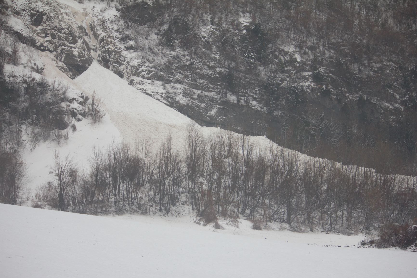 rechts davon im altiger zug kommen die grossen lawinen;) , heuer bis jetzt nur kleine staublawinen. 3 davon bis zum dorfrand eine ins dorf, aber sehr schwacher druck.dafür schon viel firnschnee auf 500m.es gab jahre mit einem dreck-rutsch über den firnschnee..hat der schnee bis zum nächsten winter überlebt auf 500m  da gibts aus vergangenheit andere kaliber