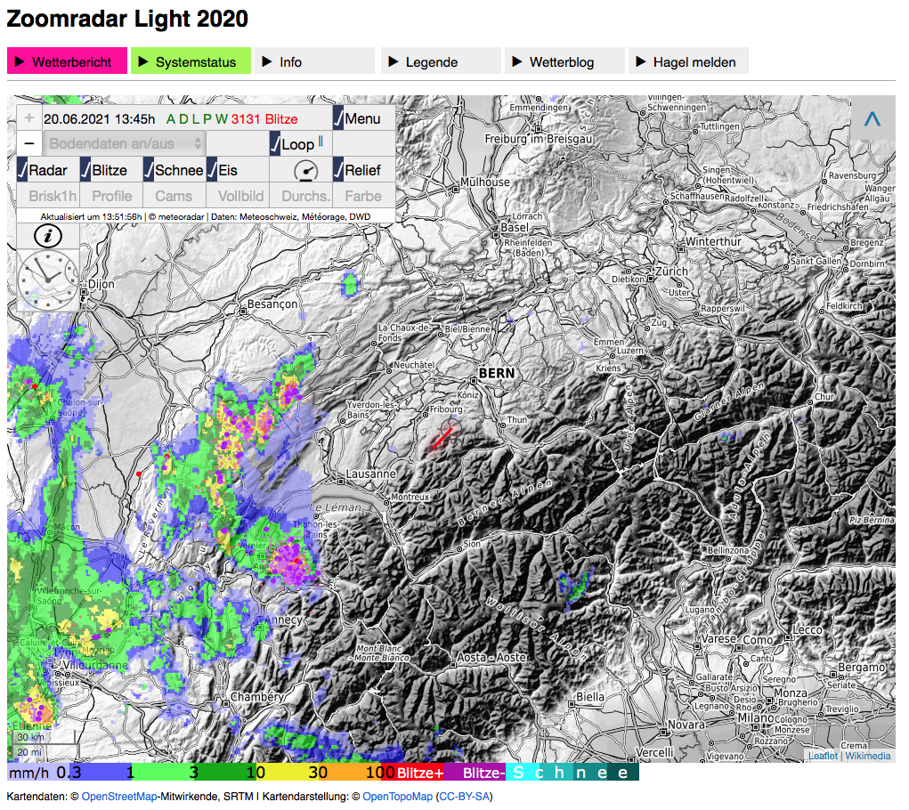 Arcus_Praecipitatio hat geschrieben: ↑So 20. Jun 2021, 12:48 MeteoSchweiz tendiert eher auf die Variante mit den stärksten Gewitter in der West-/Nordwestschweiz (laut MeteoSchweiz-Blog, auf Twitter vor 29min geposted worden):