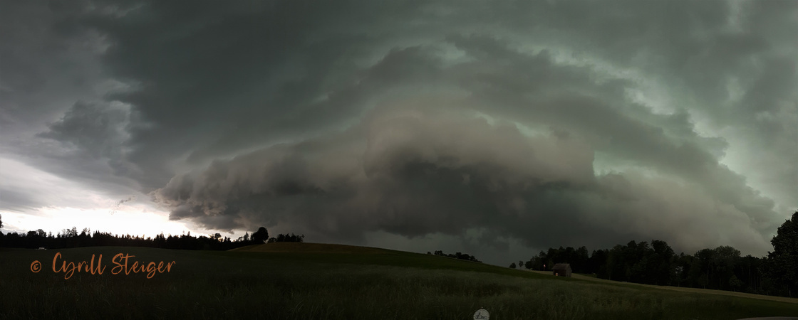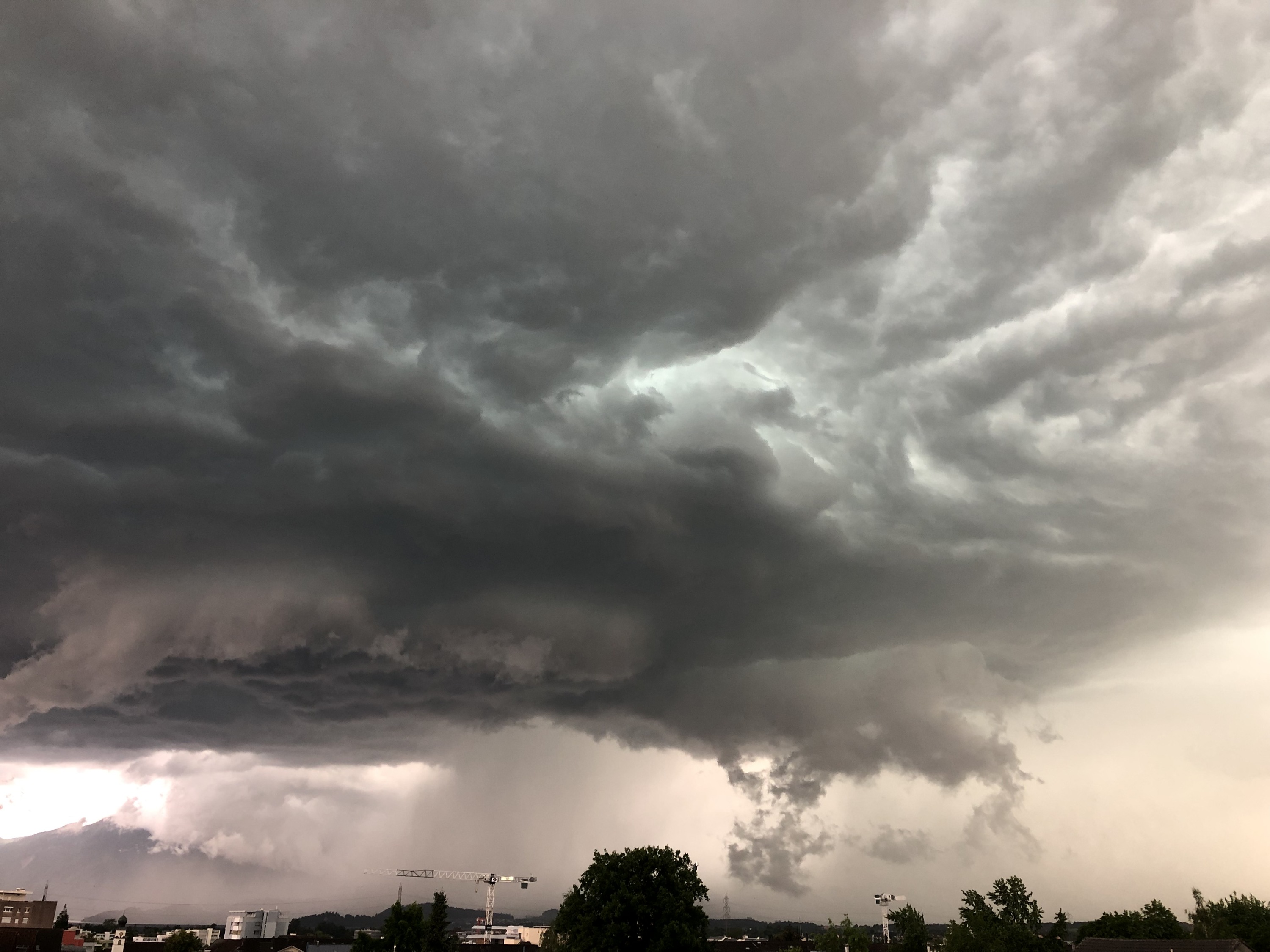Nachdem uns die Superzelle in Steinhausen ZG gestern um ein paar km rechts liegen gelassen hat, waren wir heute mittendrin statt nur dabei - und das mittels CO2-neutralem Balkon-Chasing.