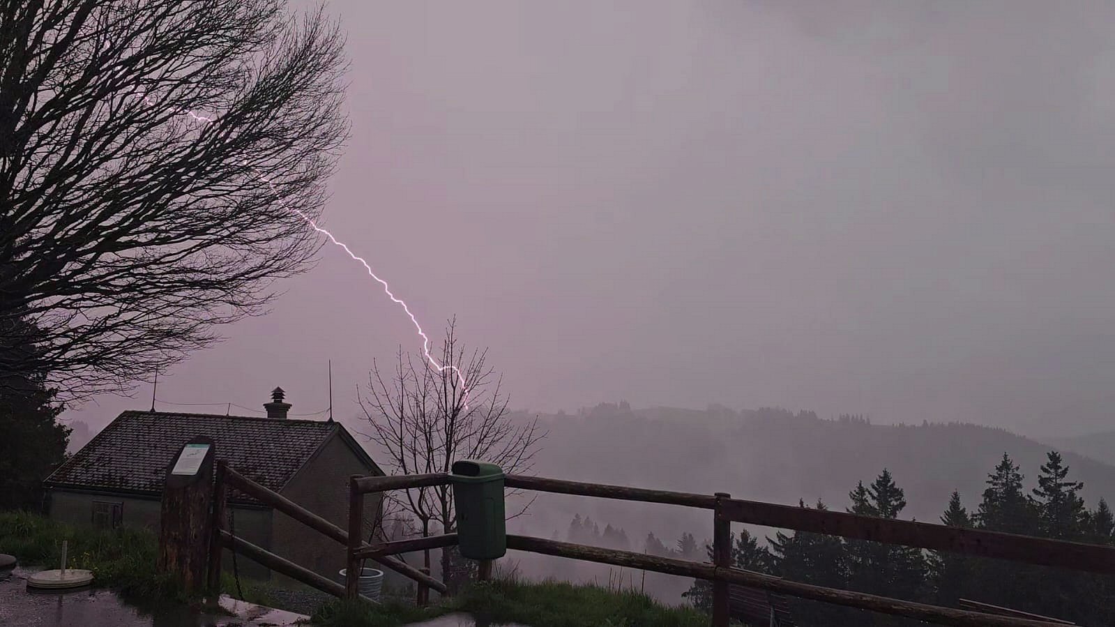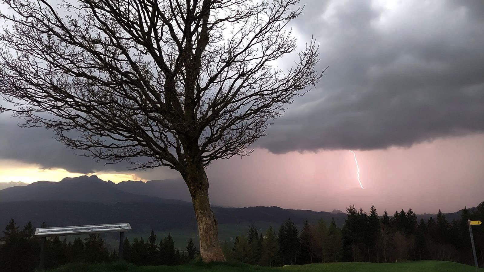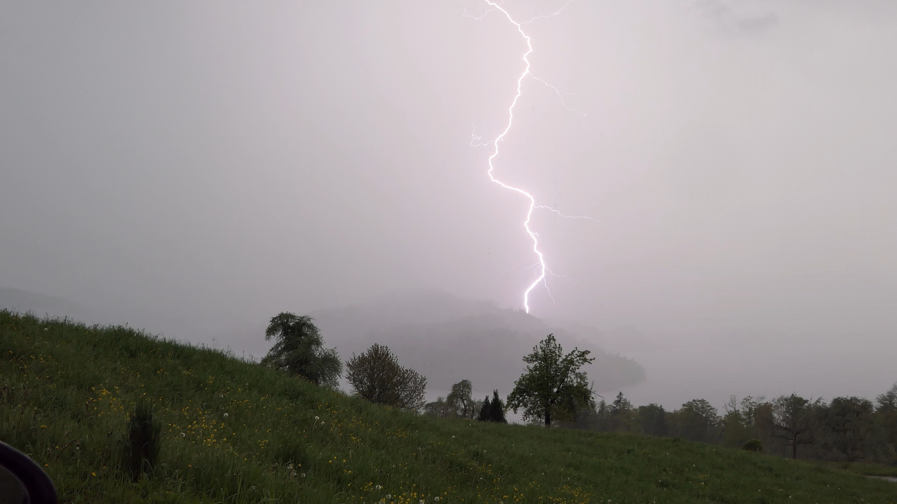 Die nachfolgende Zelle produzierte vor dem Niederschlag viele Erdblitze auf breiter Front, teils aus dem Amboss heraus (folgen im Video).