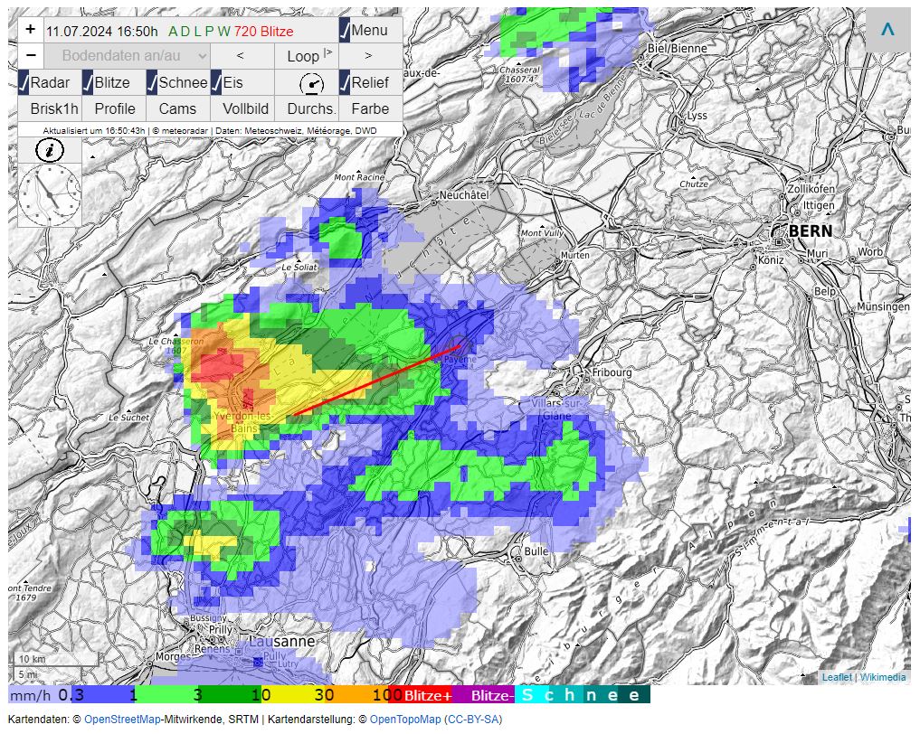 Hoppla. Das riecht nach Superzelle über Yverdon. Zieht schön Richtung Bern.