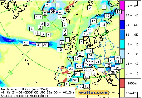 ...und noch eine Regenkarte. GME. Für die nächsten 24 Stunden (genauer: Samstag-Sonntag 00 UTC).