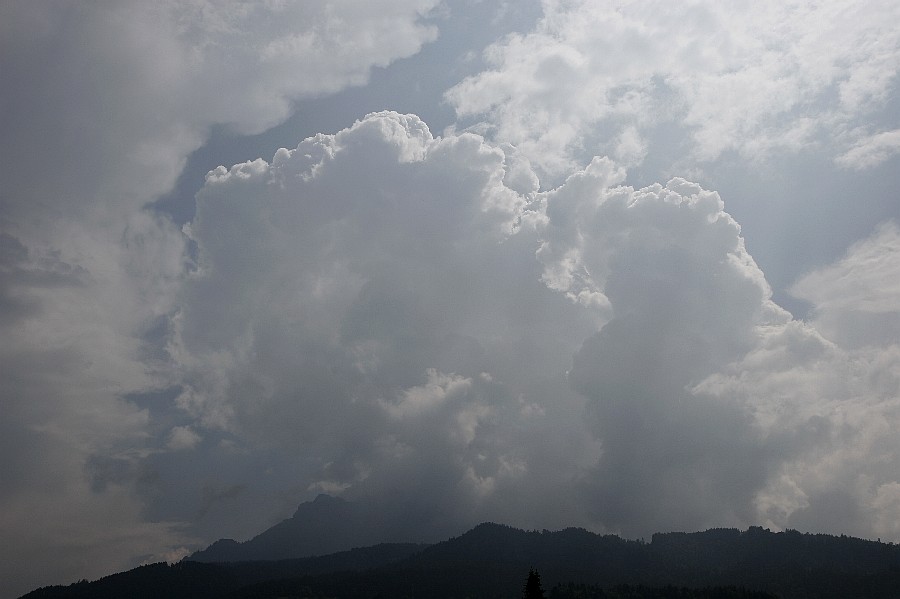 Unwetter im Bregenzerwald. Man seh es regelrecht kommen wie sich aus dem Allgäu/Bregenzerwald heraus die konvektive Aktivität dem Rheintal näherte. Von dort wahrscheinlich Einbezug neuer Warmluft. Die Tat der Aktivität sehr gut.