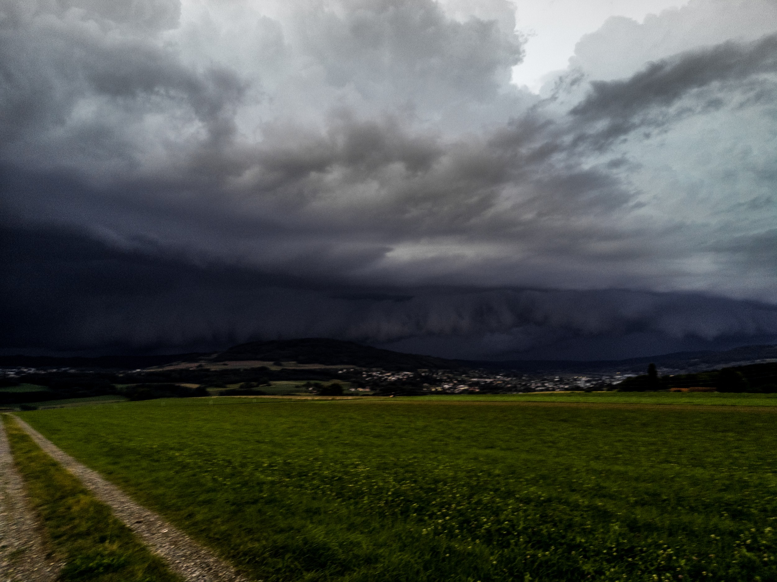 Perfekt denn die ganze Front zog gerade auf uns zu. Ein Prachtexemplar einer Shelfcloud. Diese zwei Bilder sind lediglich Handyfotos. Kamerabilder und Videos werde ich zu Hause dann durchschauen.