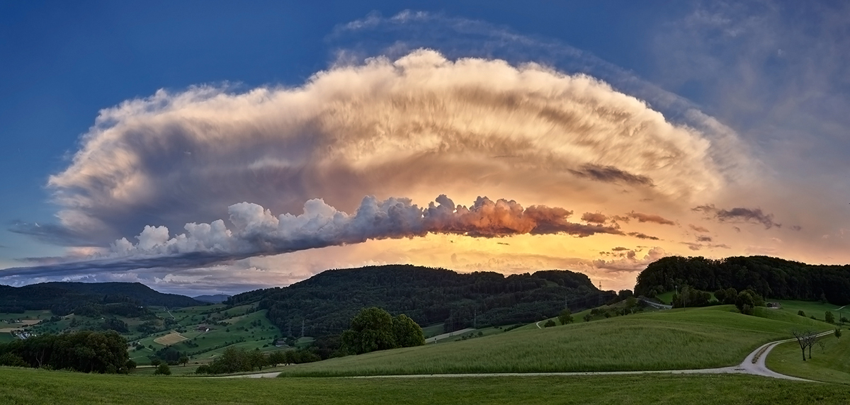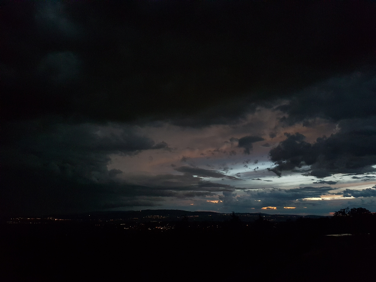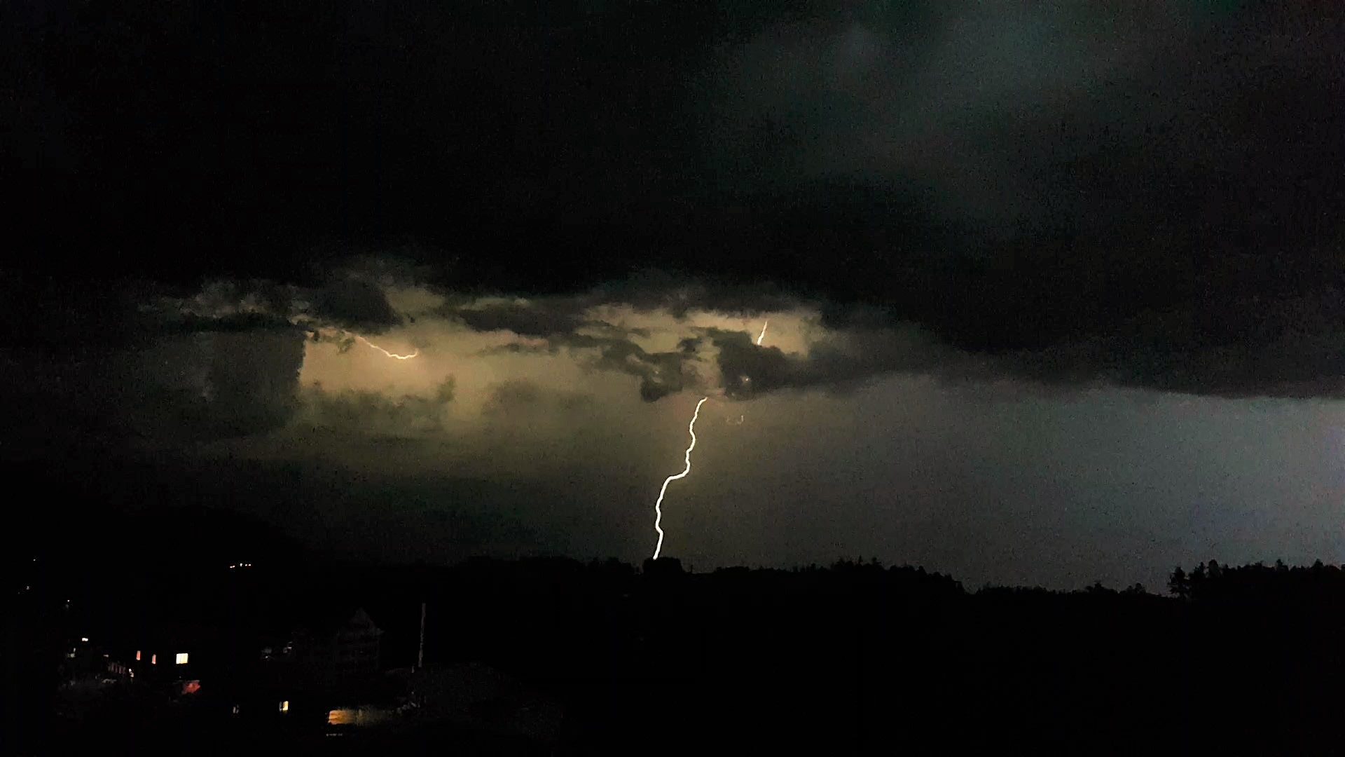 Am frühen Abend streifte uns eine Gewitterzelle. Seit einer halben Stunde nun Outflow von den ehemaligen Voralpen-Gewittern. Das ist grundsätzlich kein gutes Zeichen für Gewitter. Wer weiss, gegen Westen formieren sich ja kleine Zellen, vielleicht kommt noch was kleines. Habe übrigens noch eine Meldung von mittelgrossem Hagel in Schmerikon SG bekommen, ich muss aber noch einmal nachfragen wegen der Grösse. Sieht nach mindestens 2 cm aus, eher mehr.