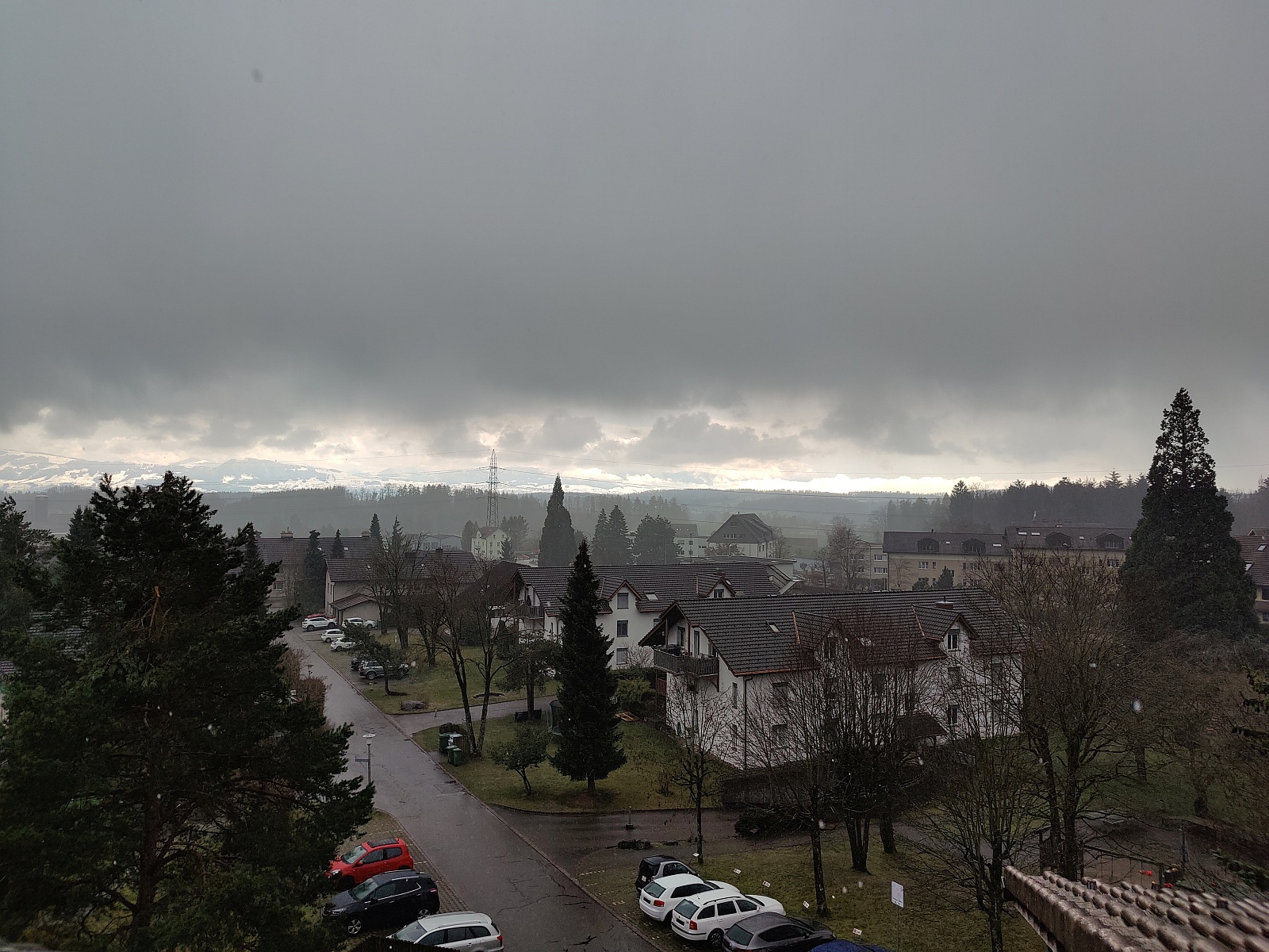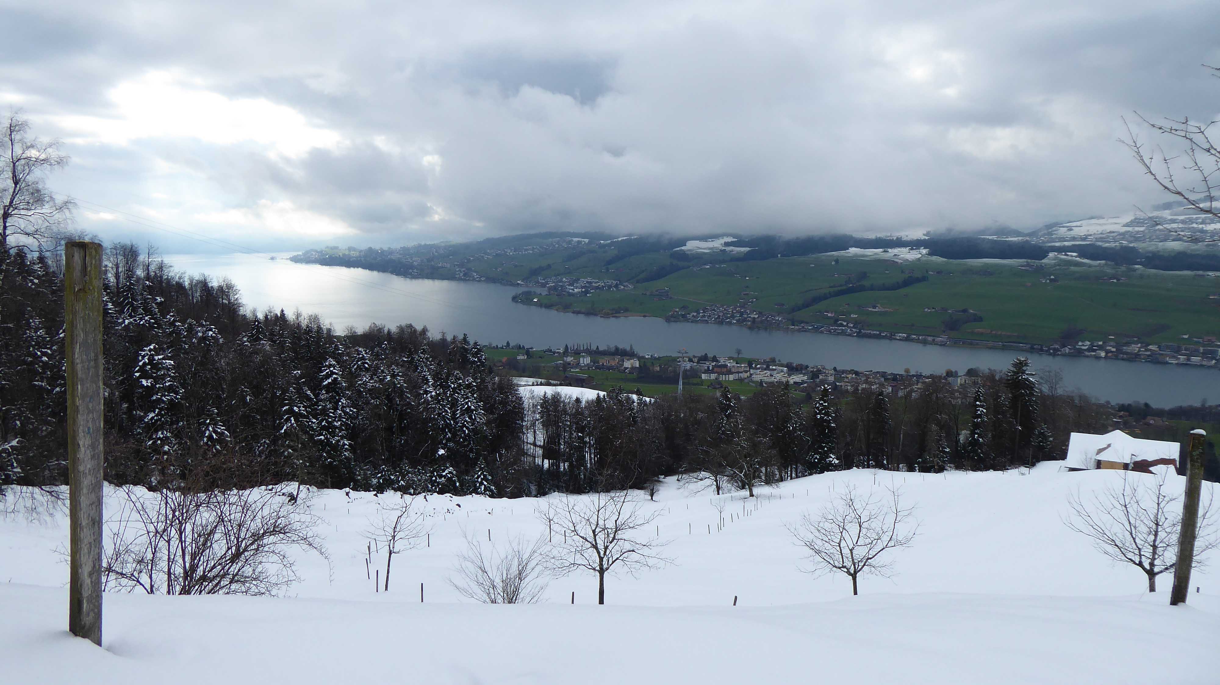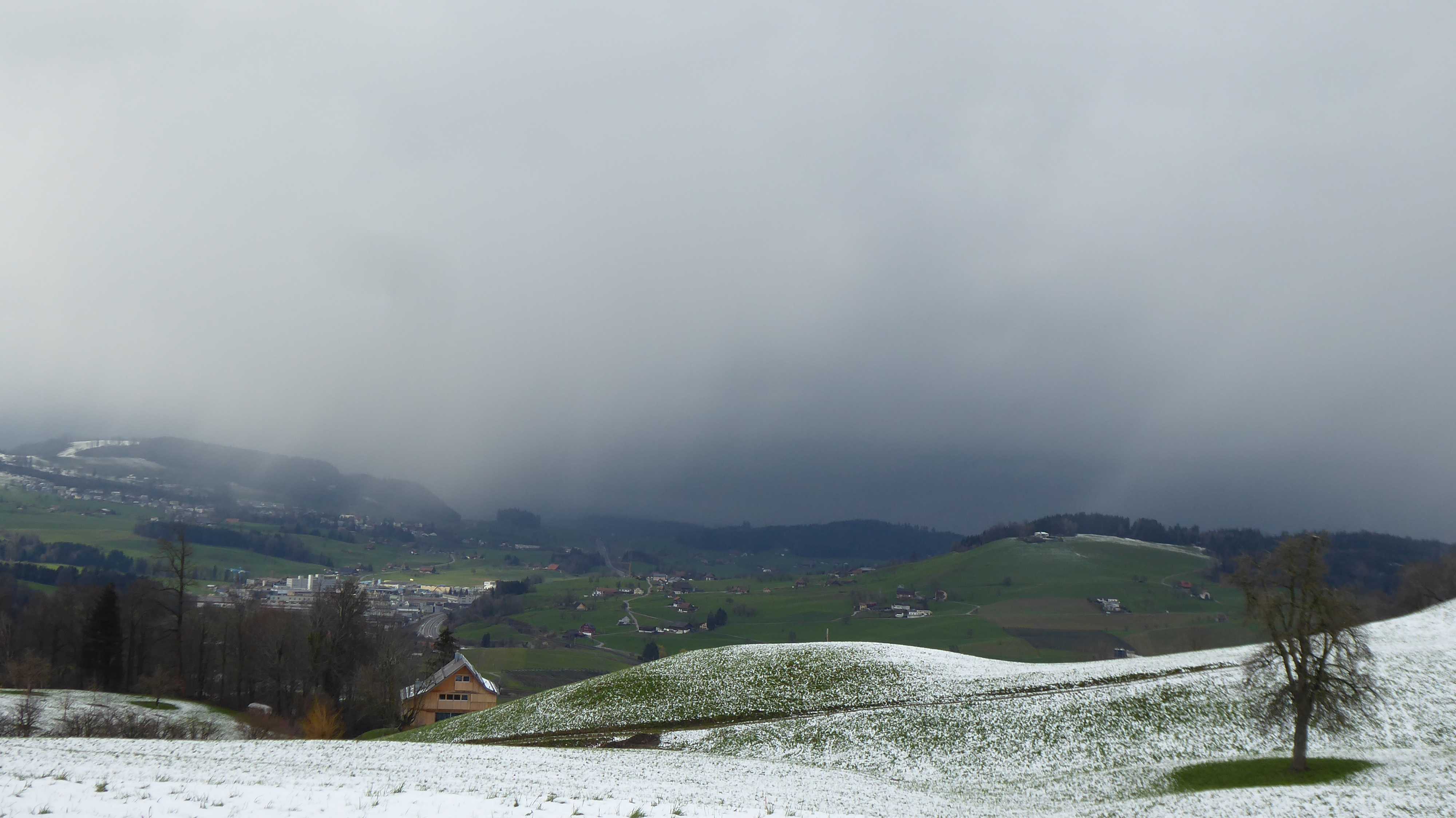 Gestern Nachmittag gab es zum ersten Mal seit Tagen etwas Sonnenschein. Das nutzte ich aus um ein Stück gegen die Seebodenalp hochzulaufen. Auf dem Rückweg sah ich bei Zug und Baar und über dem Albis einen heftigen Schneeschauer. Da ich an meinem Standort leichten Westwind verspürte, beachtete ich diesen Schneeschauer nicht weiter da ich dachte, der ziehe ab. Dem war nicht so, er kam immer näher.