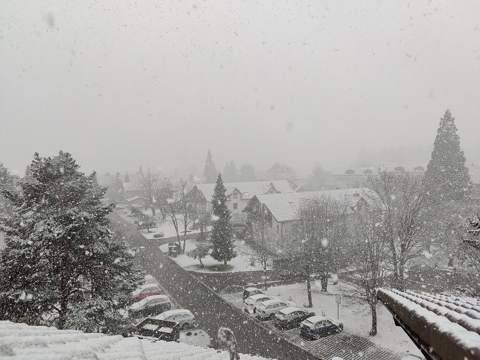 Gestern Abend schien der Schnee-Event vorbei.... aber wie so oft hier im Osten kommt die grösste Schneeladung ganz zum Schluss; aus dem Fenster geschätzt sicher 20 cm und es schneit immer noch. T akt -3 Grad.