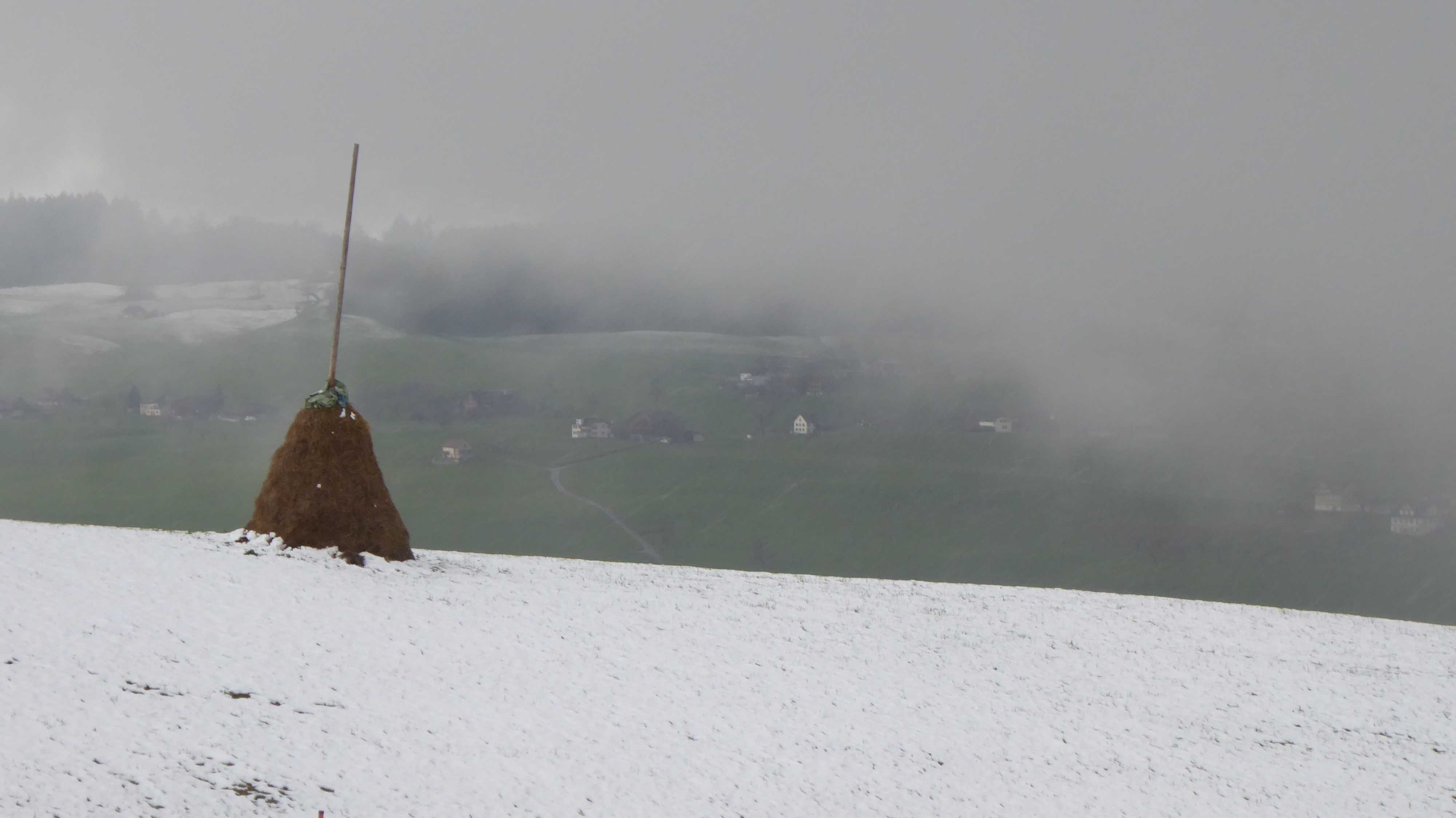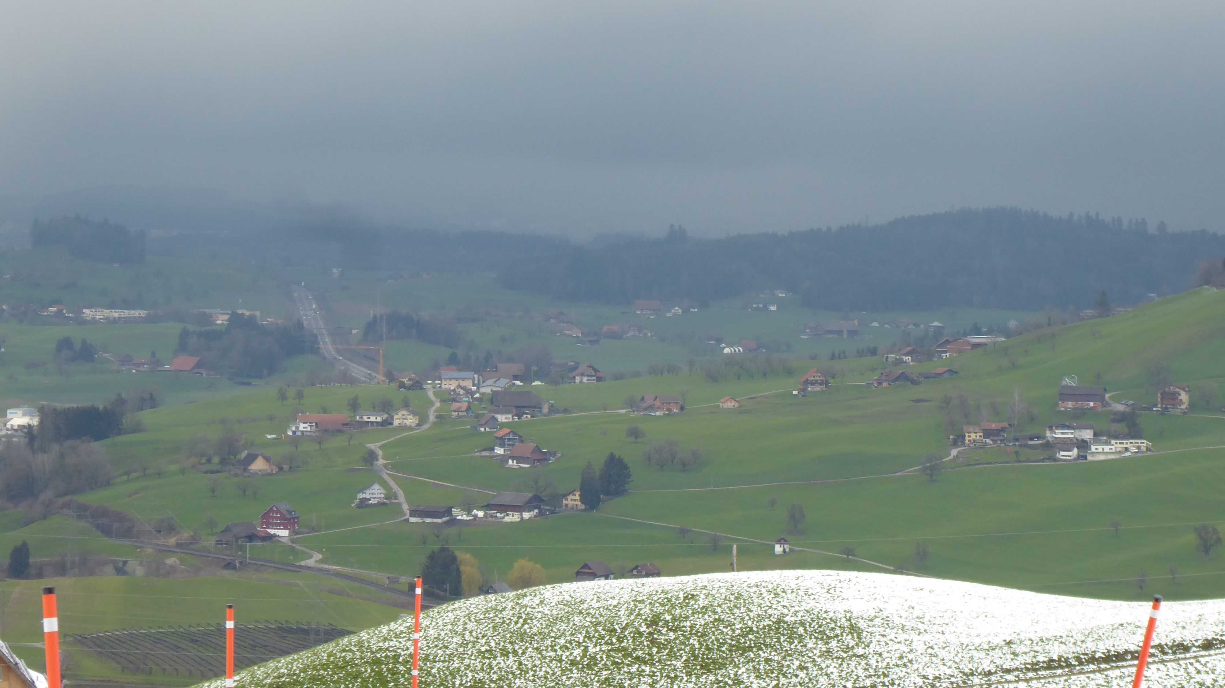 Hier im Grüt b. Wetzikon gab es zwischen 14:25 und 15:25 Uhr einen ausdauernden Graupel-/Schneeschauer, der die Landschaft erneut temporär in eine Winterlandschaft verwandelt hat.