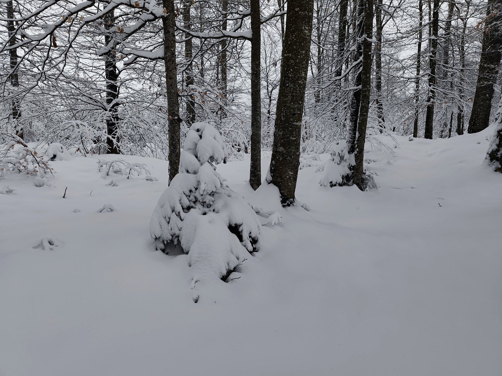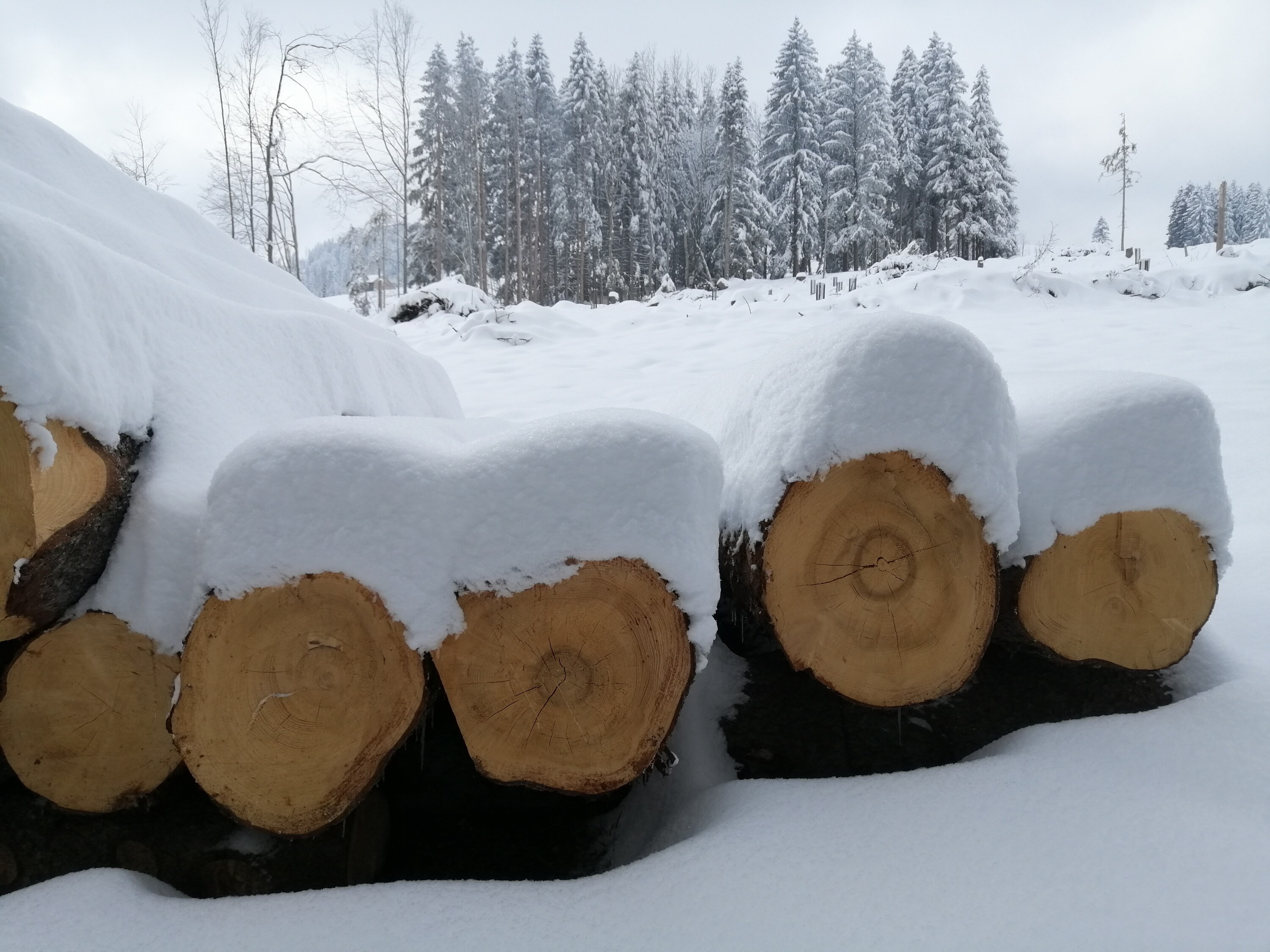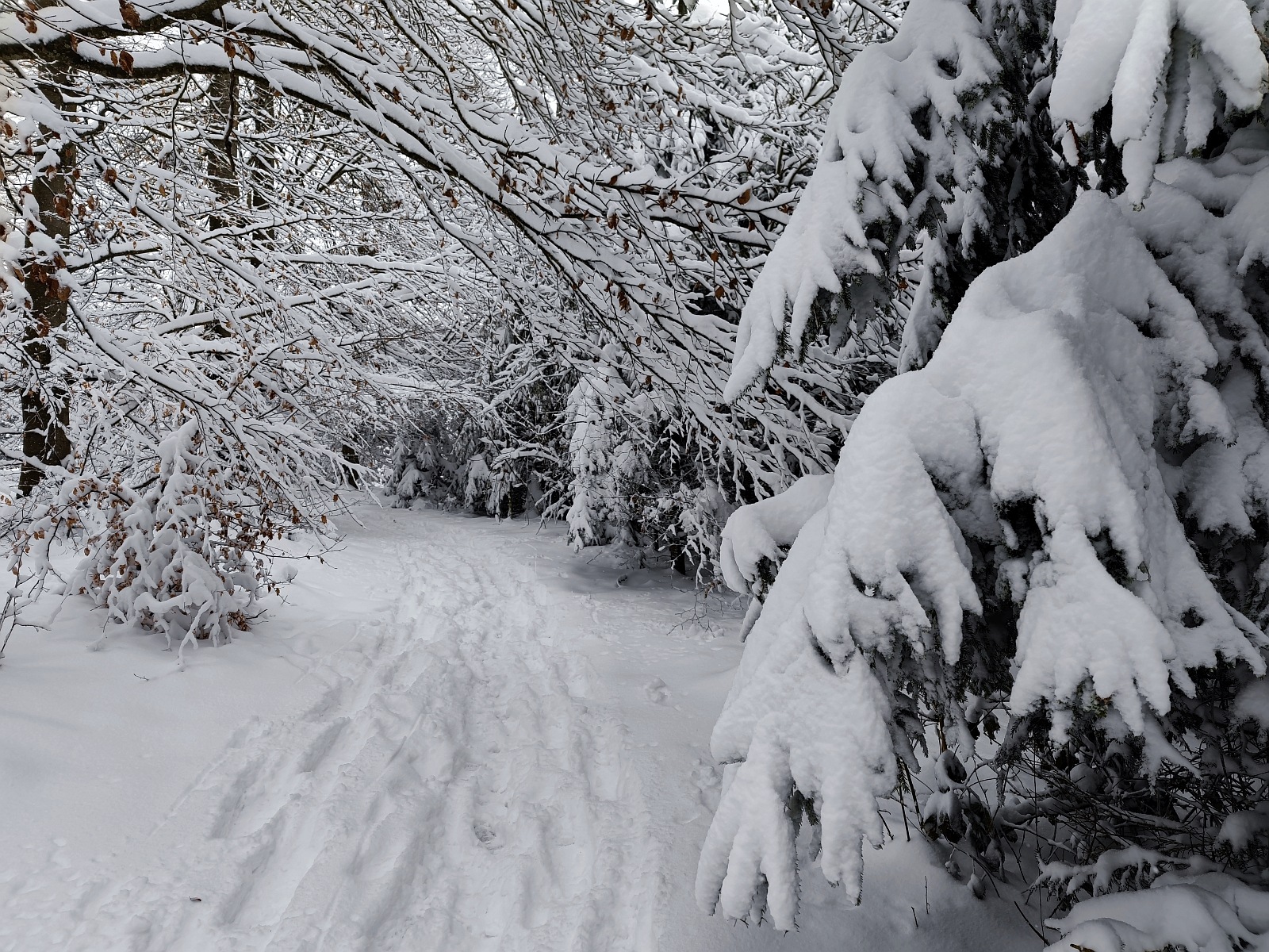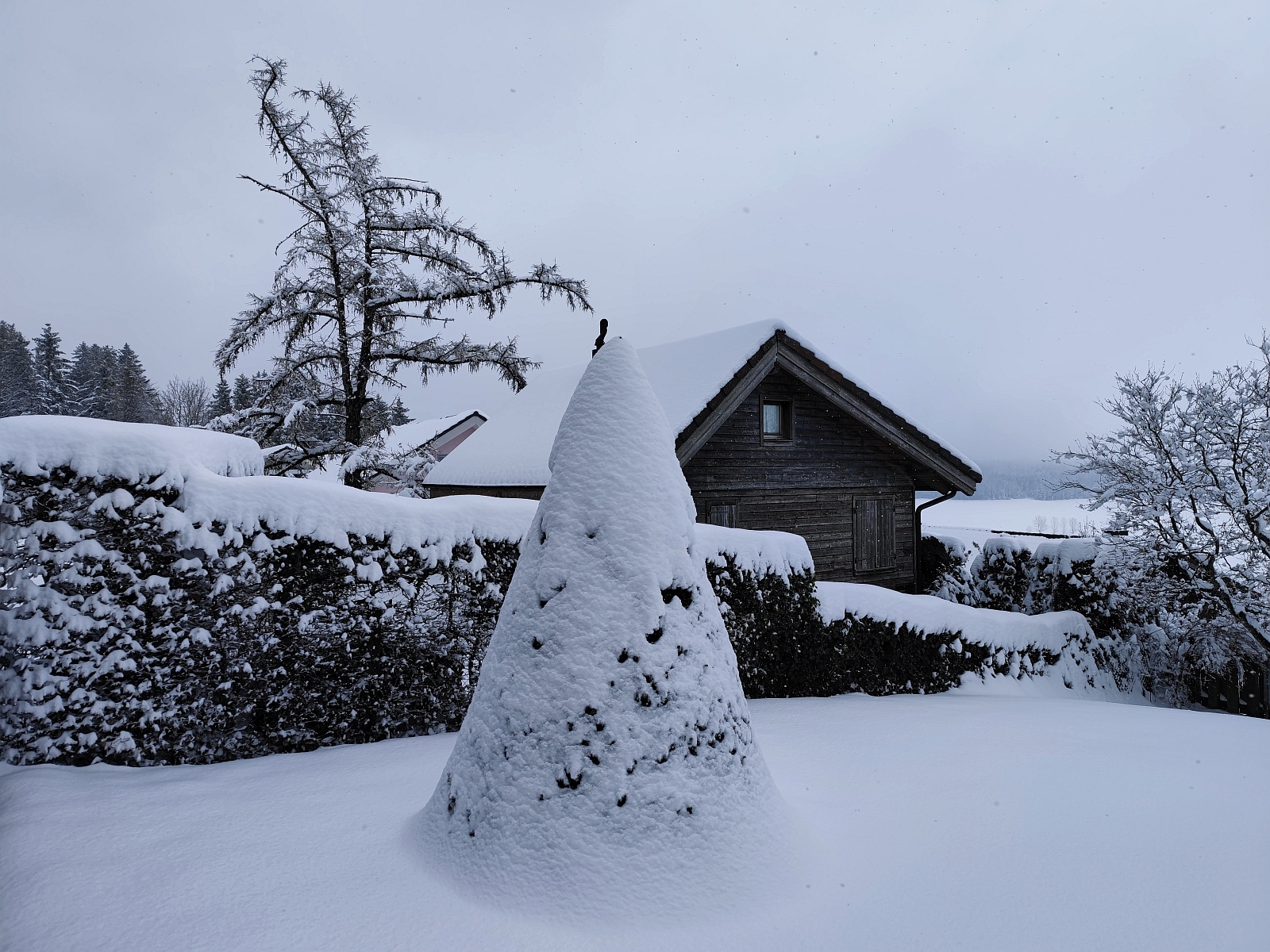 Ganz im Gegensatz zu den tiefen Lagen, wo nachmittags kein Schnee mehr (direkt am Baldeggersee) bis ein paar cm Nassschnee lagen (Dorf Hitzkirch), herrschte ab ca. 550 m ü.M. tiefer Winter, wobei die Schneehöhe zwischen Dorfausgang Hitzkirch (550 m ü.M.) bis Hämikon (690 m ü.M.) kaum zunahm und um 10 cm war. In Müswangen (790 m ü.M.) hatte es auch "nur" 10-15 cm Schnee, auf dem Hochplateau beim Restaurant Hämikerberg (820 m ü.M.) dann 17 cm. Im Wald oben auf dem Kamm des Lindenbergs (ca. 860 m ü.M.) hatte es knapp 20 cm.