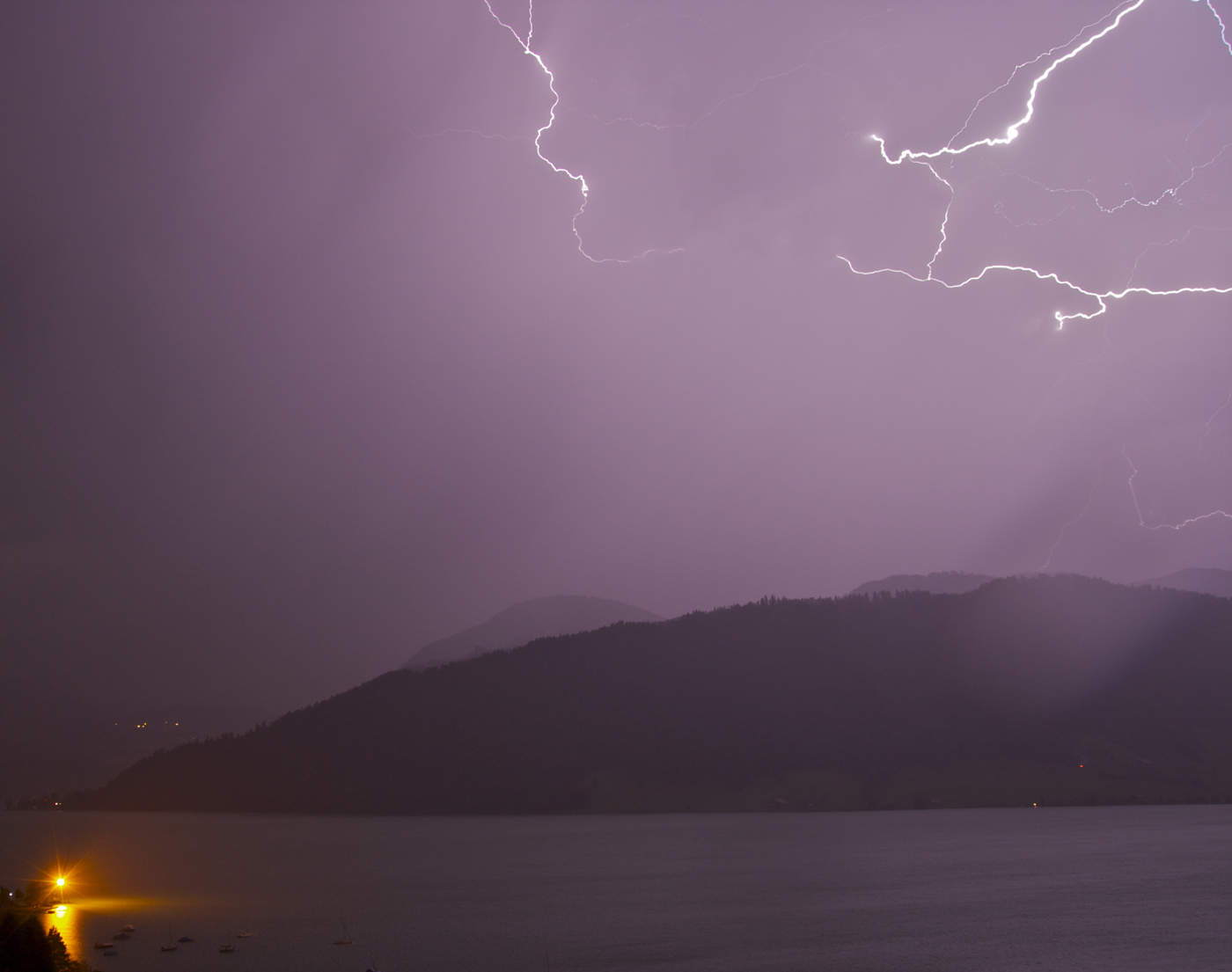 Die Gewitter waren hier in Oberägeri recht harmlos. Präfrontal gab es ebenfalls einen kräftigen Windblast, der uns zu einem lokalen Feuerlöscheinsatz gezwungen hatte ;) Die Blitzfrequenz war recht bescheiden. Dank dem genialen Stao unseres Feriendomizils oberhalb des Ägerisees bin ich mit der Ausbeute recht zufrieden: