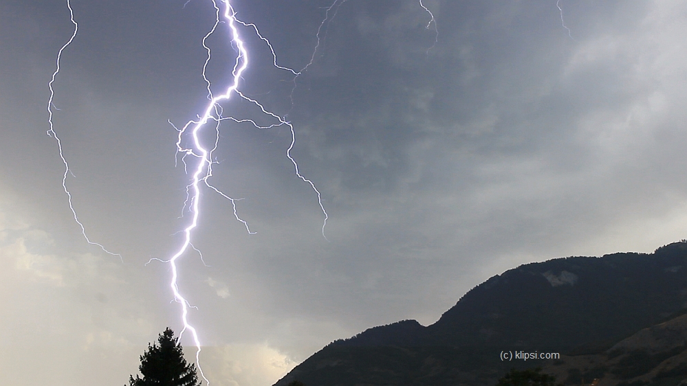 hier ein videostill vom allerersten Blitz vom ersten Gewitter westlich von Sion, kurz vor 19 Uhr.