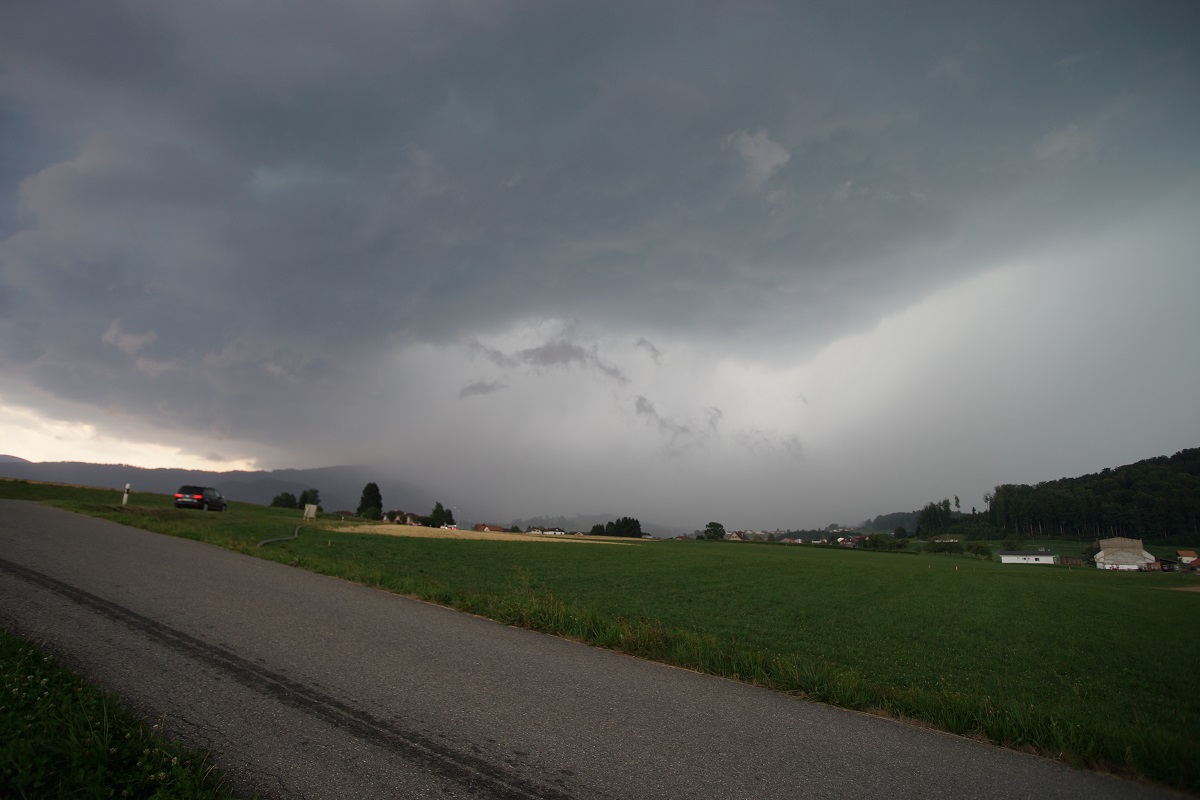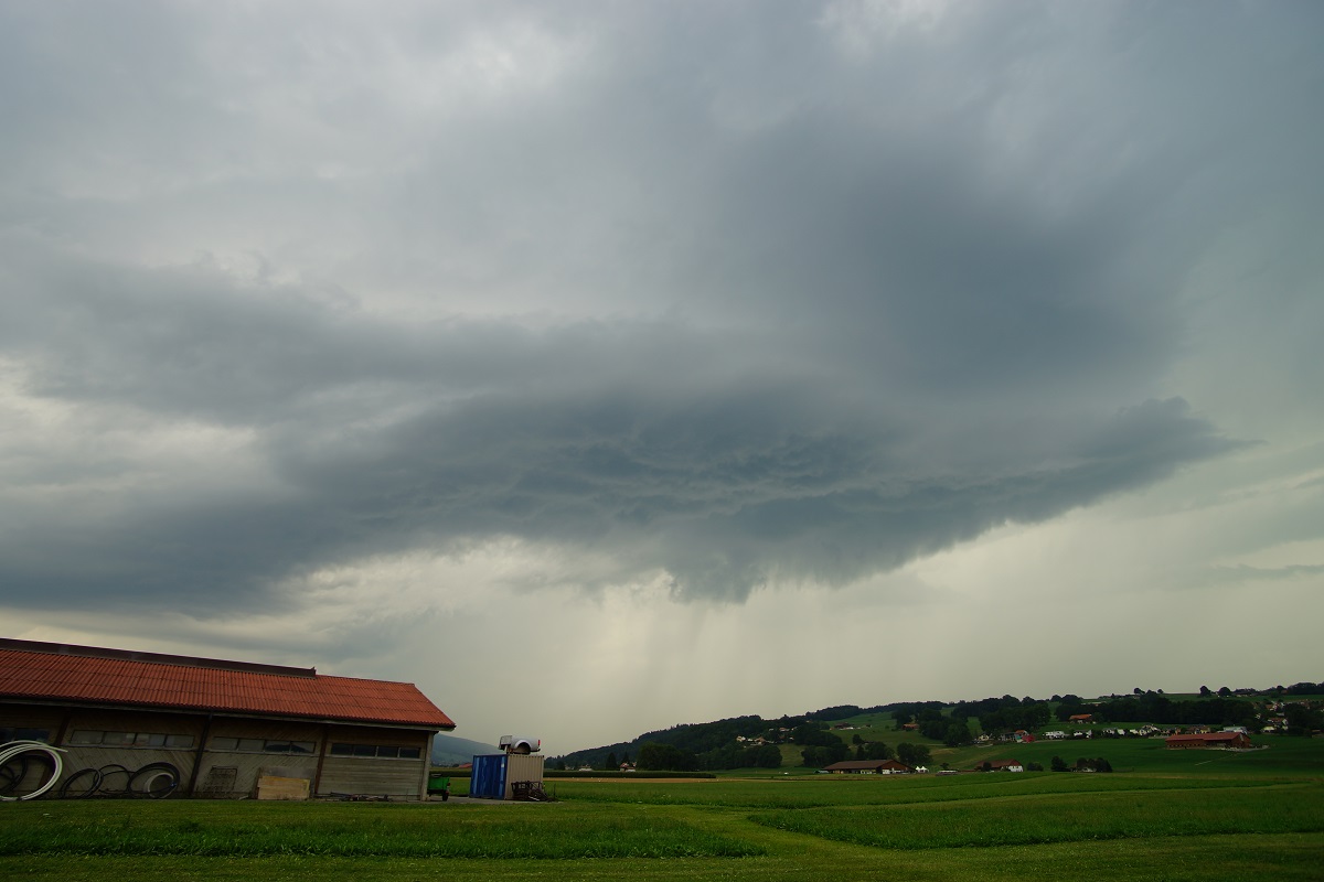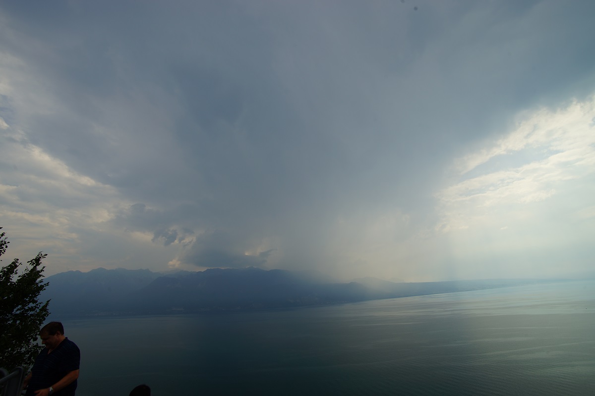 Wier erwartet(Da habe ich aber schon viel erwartet) gibt es in Frankreich eine erste Zelle mit Aufwind, der Regen über den See treibt.