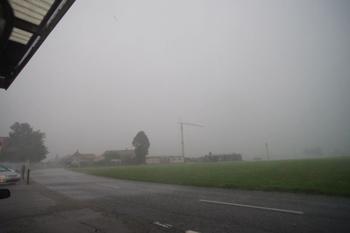 dann über Schleichwege nur knapp vor der front bis Mamishaus Schwarzenburg nur noch Regenvorhang.